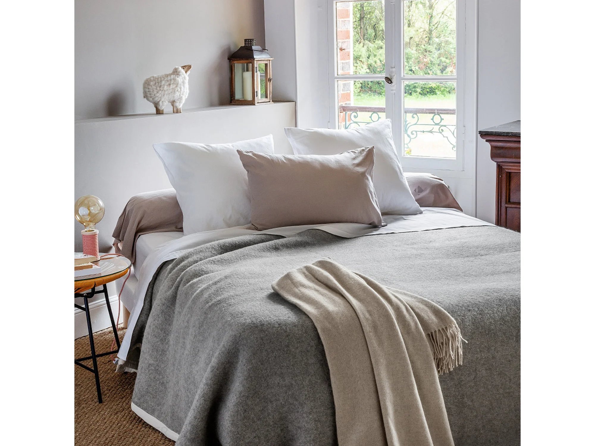 Couverture 100% pur laine vierge 240x260 cm PASTORALE blanchie