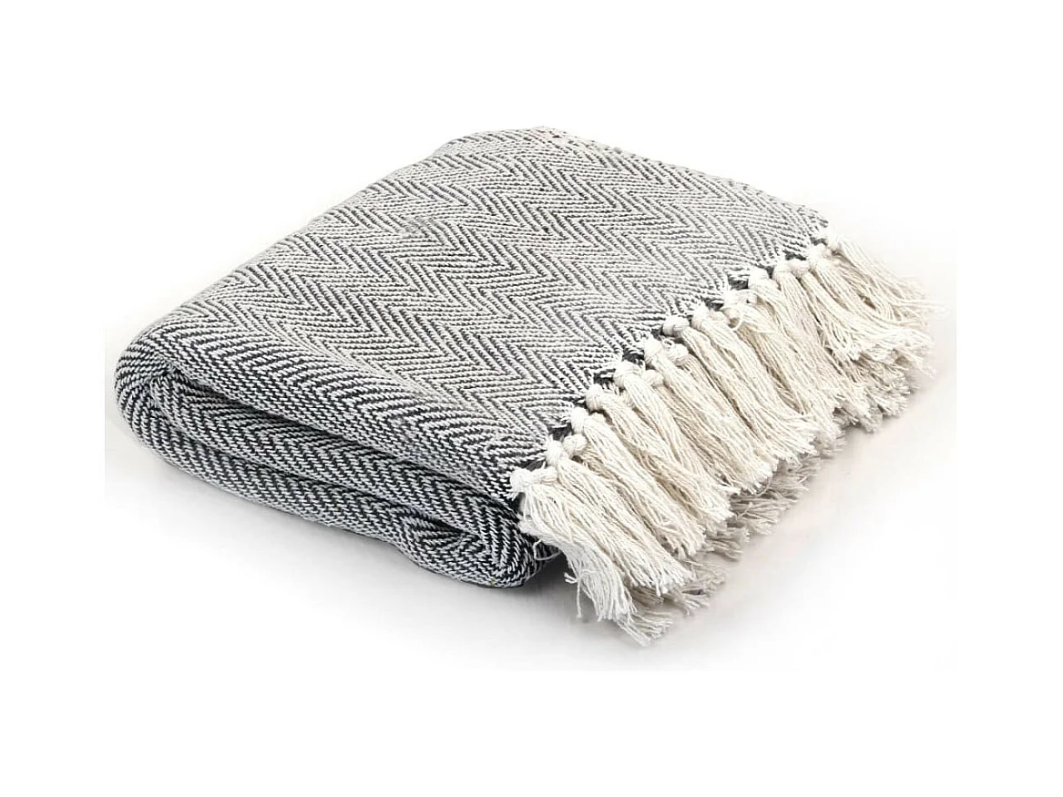 Couverture coton à chevrons 160x210 Bleu marine