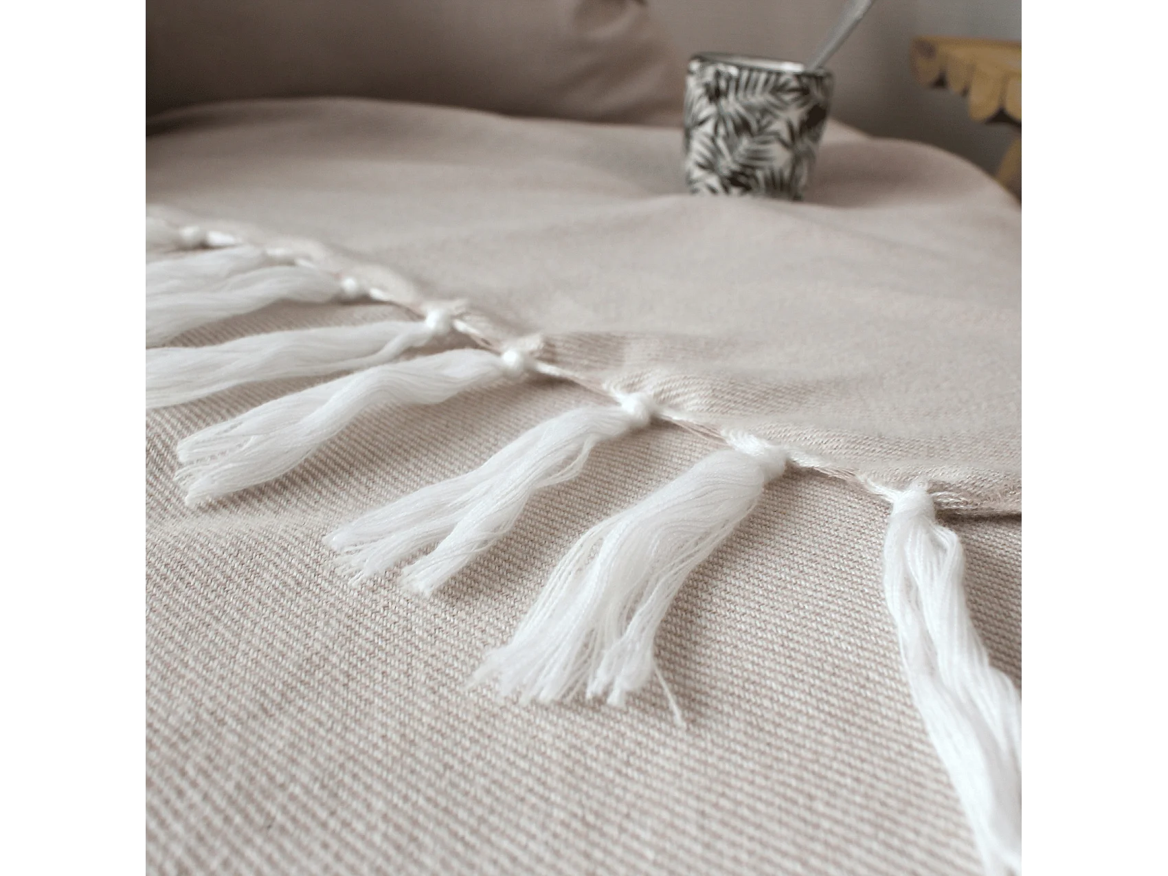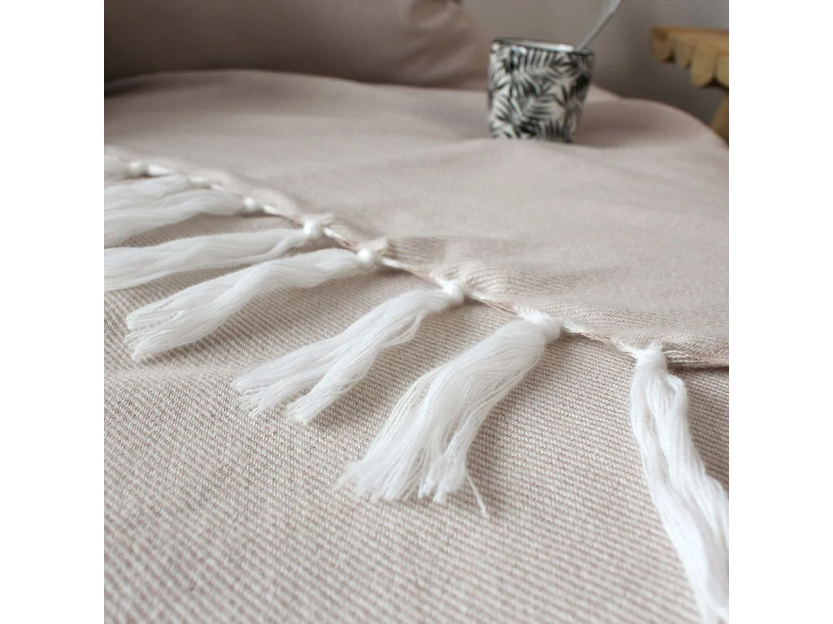 Plaid Uni à Franges XL "Dobby" 180x220cm Beige