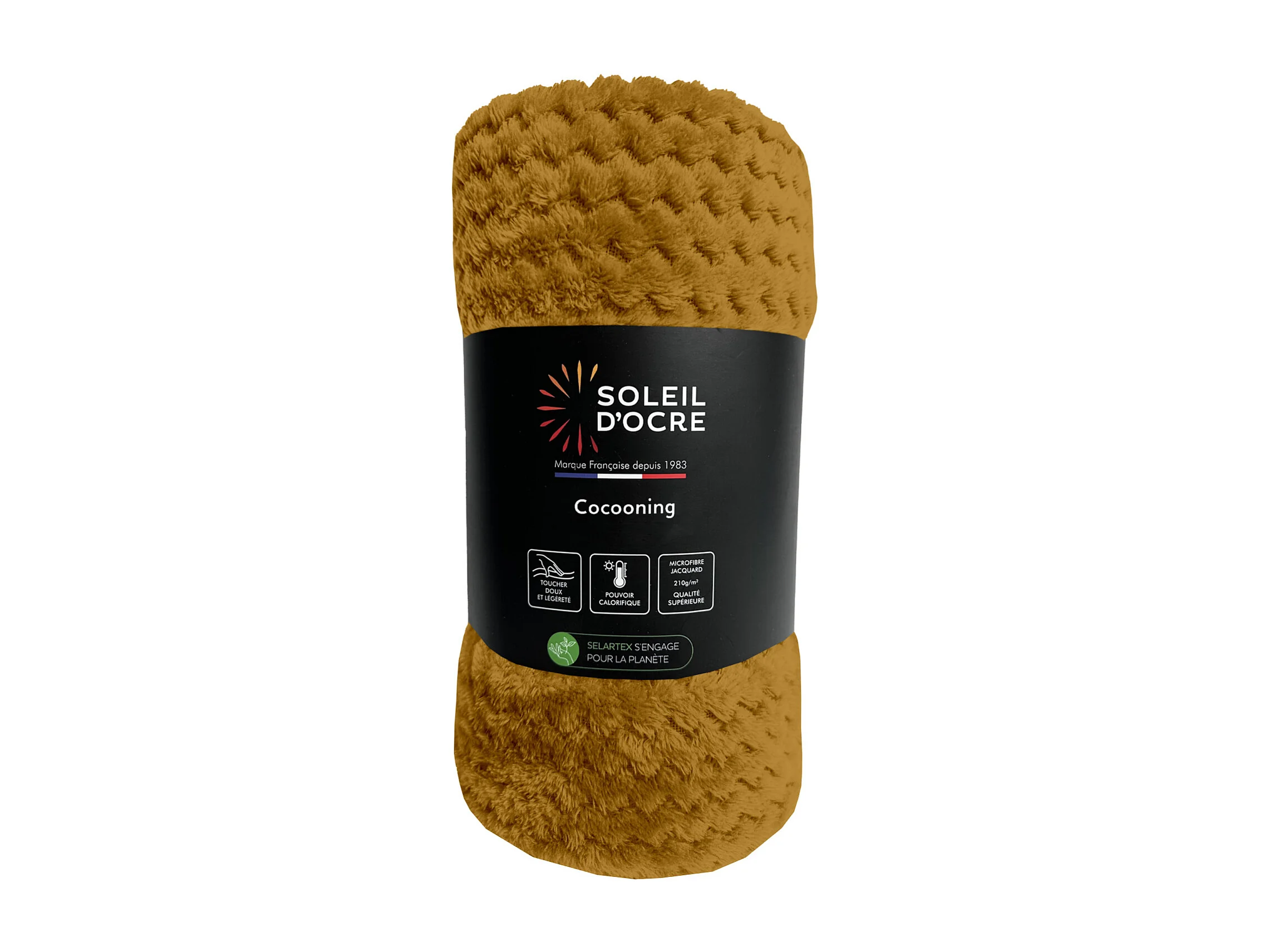 Couverture, plaid 180x220 cm COCOONING moutarde, par Soleil d'ocre