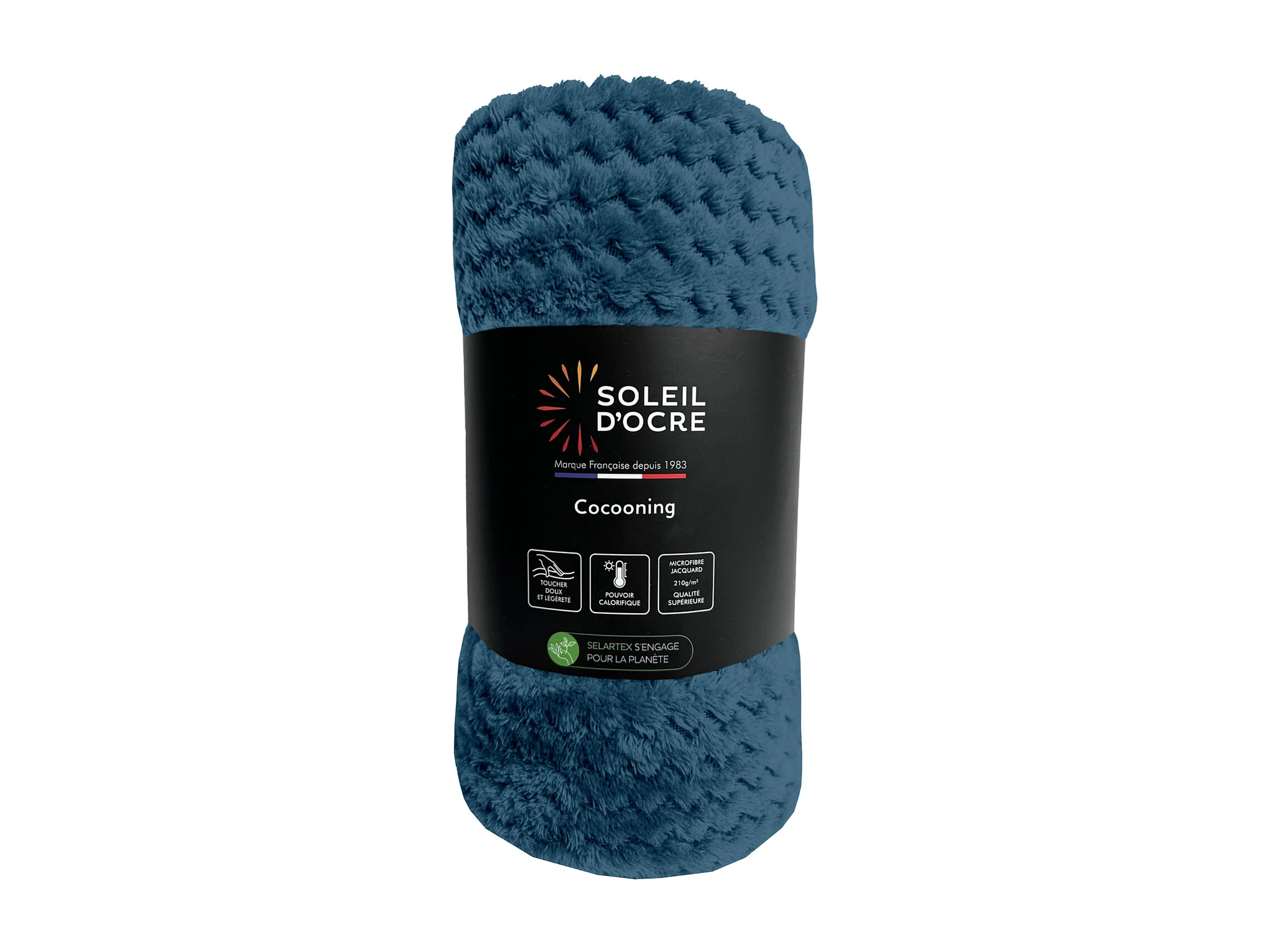 Couverture, plaid 220x240 cm COCOONING bleu canard, par Soleil d'ocre