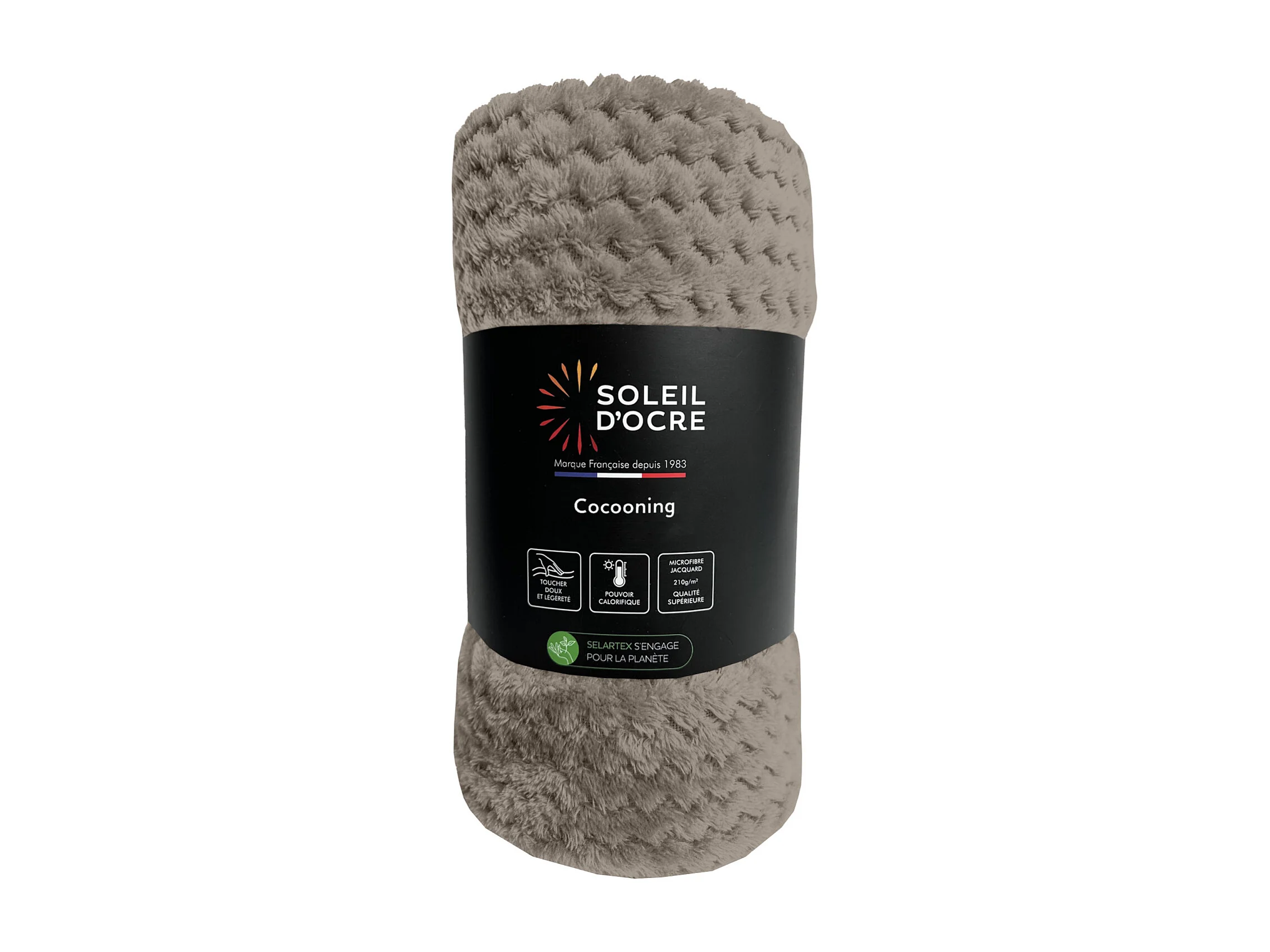 Couverture, plaid 220x240 cm COCOONING taupe, par Soleil d'ocre