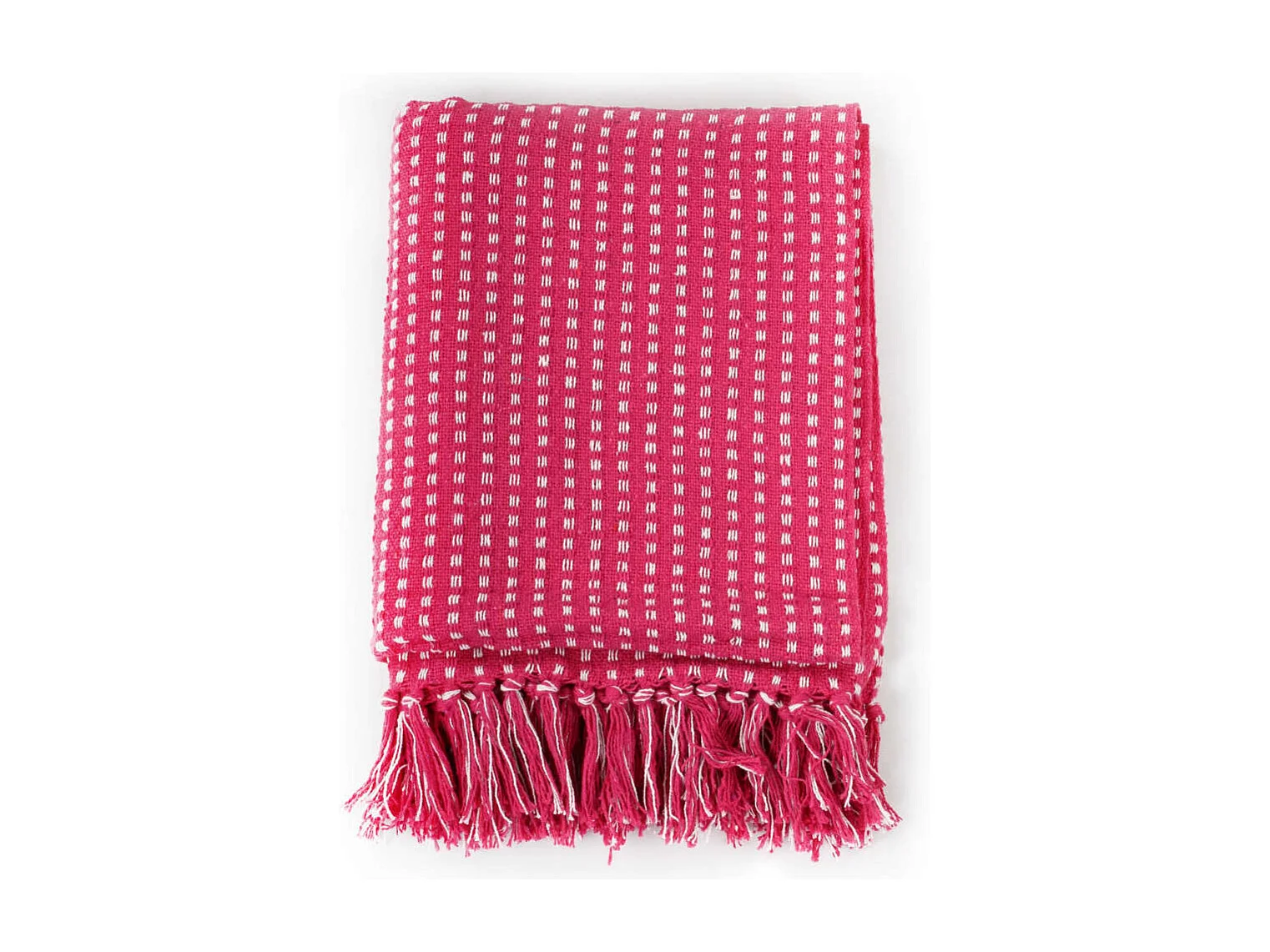 Couverture | Plaid coton à rayures 160x210 cm Rose et Blanc