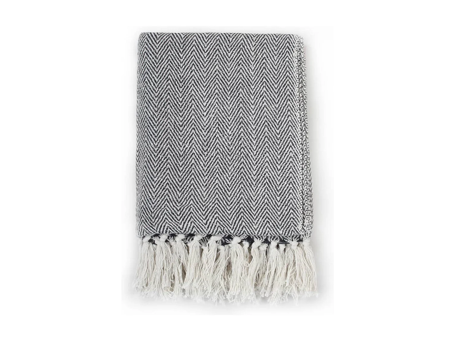Couverture | Plaid coton à chevrons 220x250 cm Bleu marine