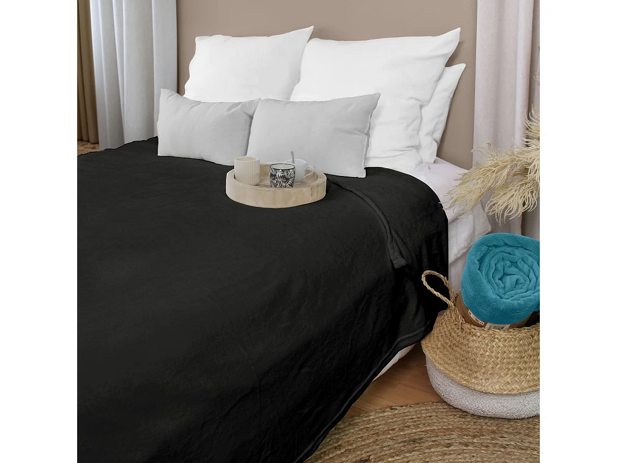 Plaid Polaire XL Uni "Coral Fleece" 180x220cm Noir