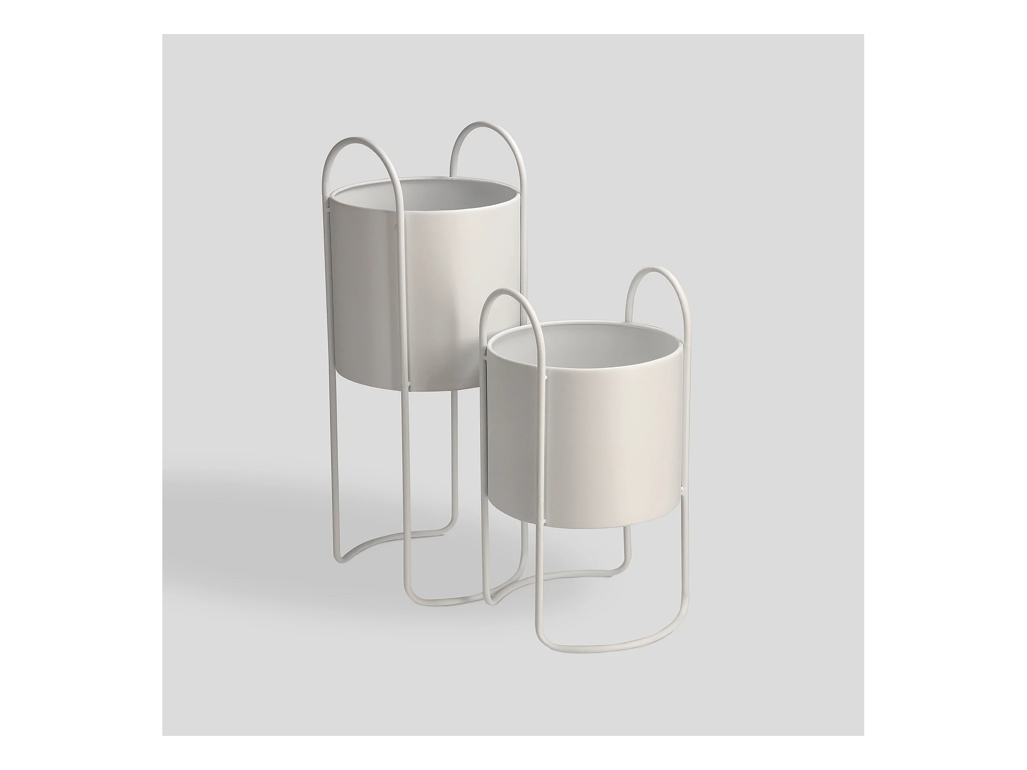 Lot de 3 jardinières en métal avec support en métal blanc 31x31x72h-26x26x57h-21x21x42h cm