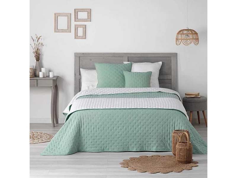 Couvre-Lit 2 Personnes "Mellow" 220x240cm Menthe & Blanc