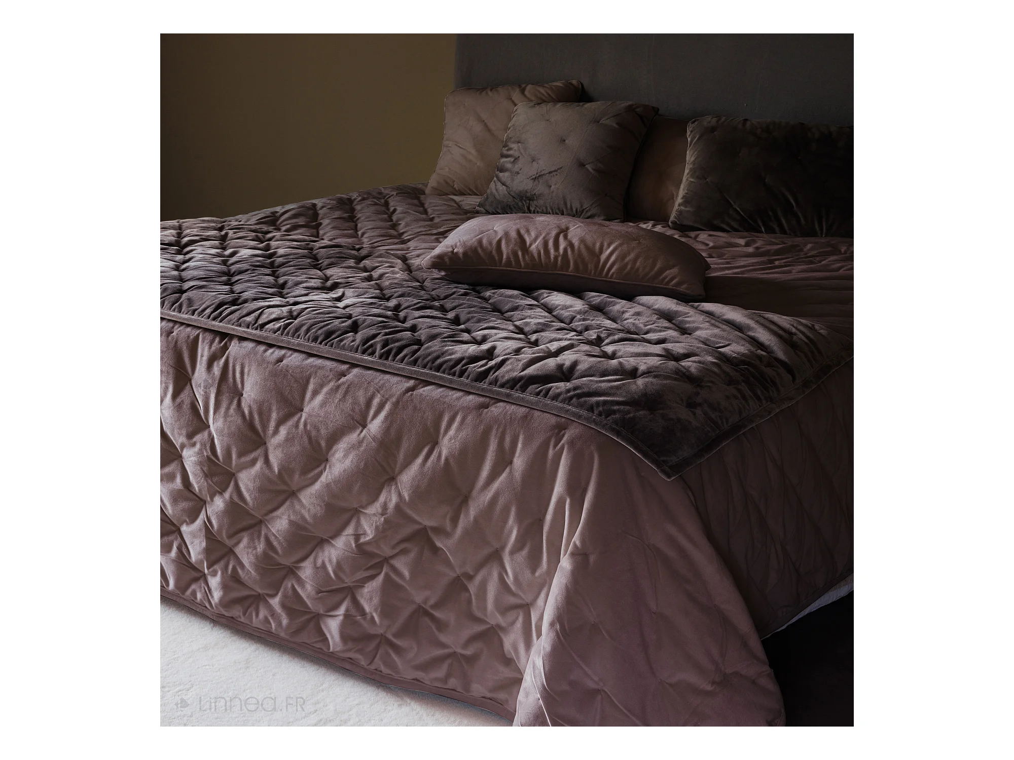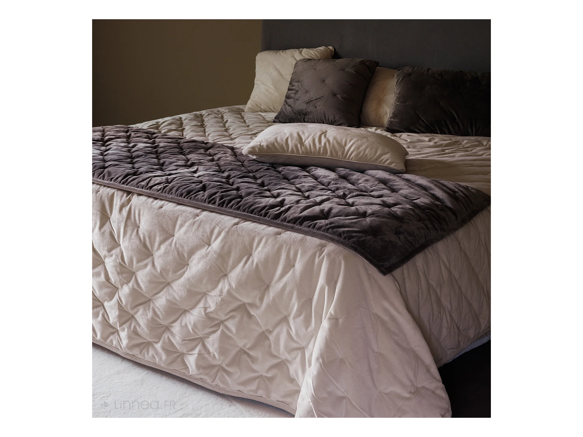 Couvre-lit 240x260 GIPSY velours piquage points brodés gris Bison