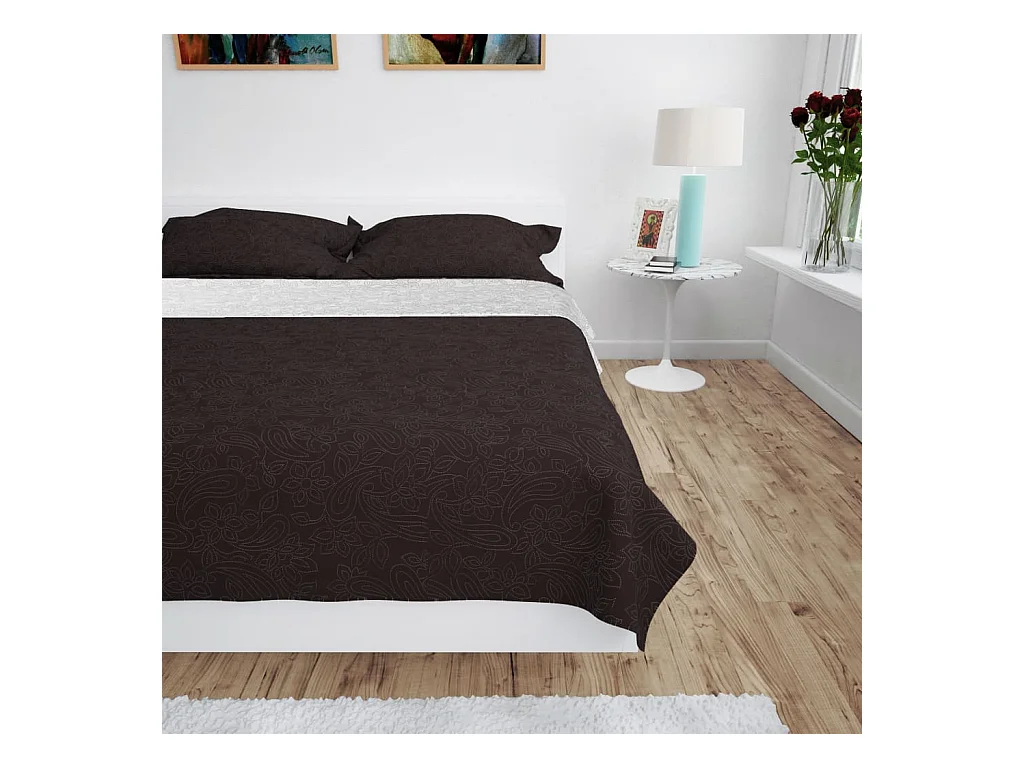 Couvre-lit à double face matelassé | Couverture 220 x 240 cm Crème et marron