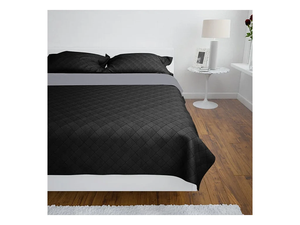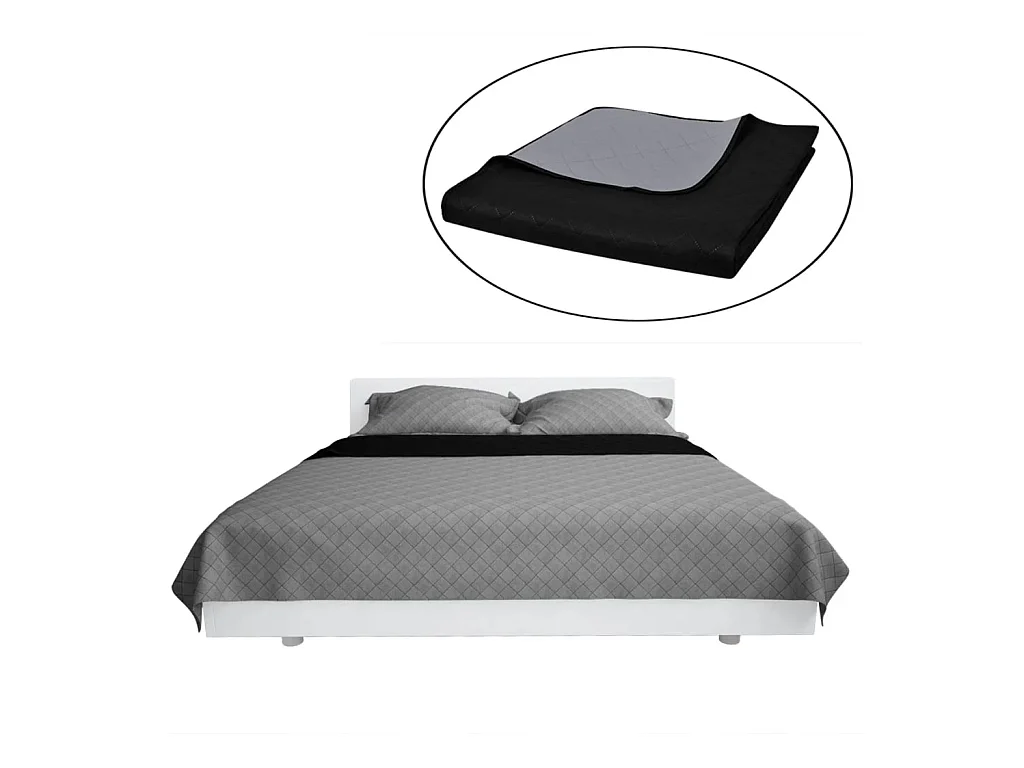 Couvre-lit à double face matelassé | Couverture Noir/Gris 230x260 cm