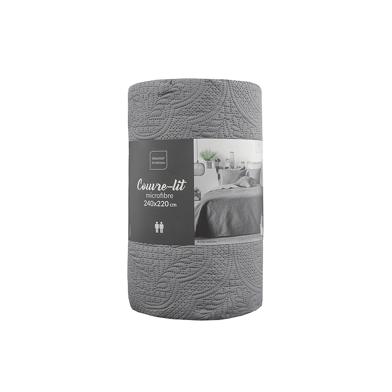 Couvre-Lit Matelassé "Romane" 220x240cm Anthracite