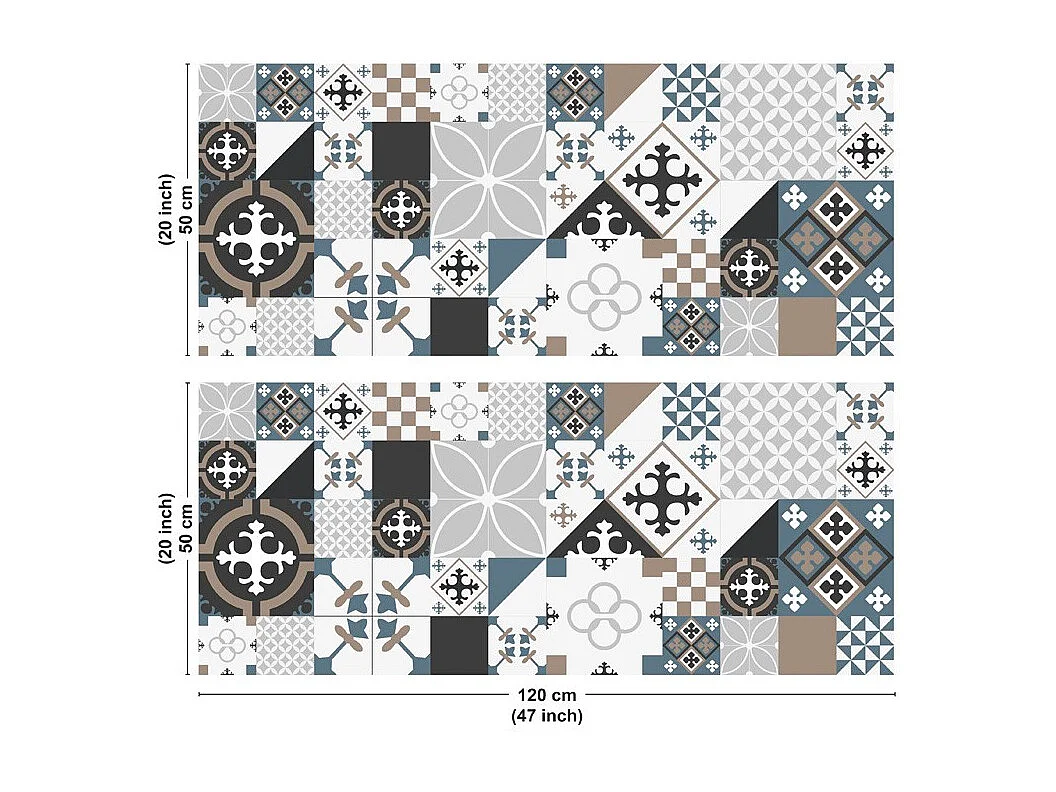 Crédence cuisine en aluminium - effet carreaux de ciment dulce - 240x50 cm (en 2 bandeaux)