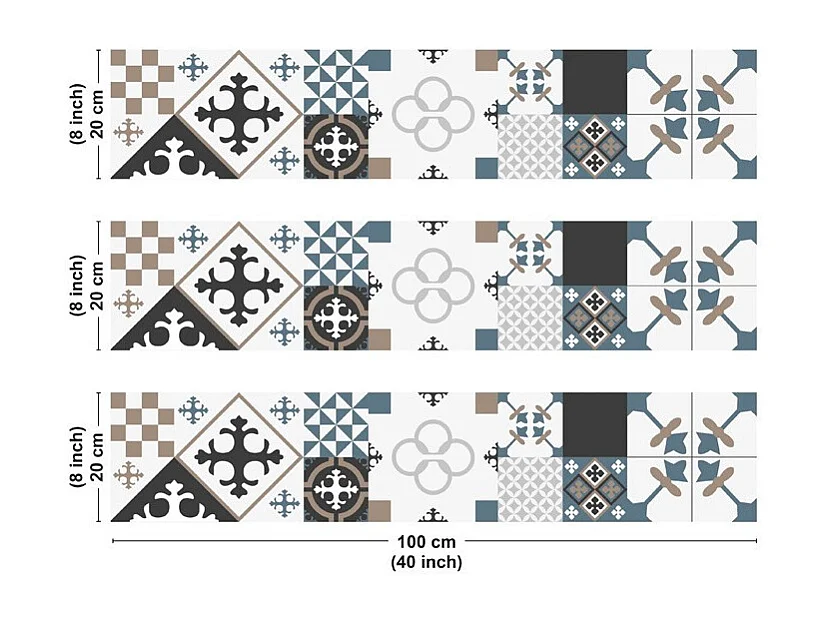 Crédence cuisine en aluminium - effet carreaux de ciment dulce - 300x20 cm (en 3 bandeaux)