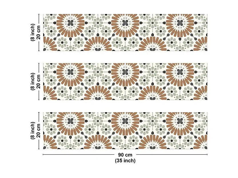 Crédence cuisine en aluminium - effet carreaux de ciment marron et vert - 270x20 cm (en 3 bandeaux)