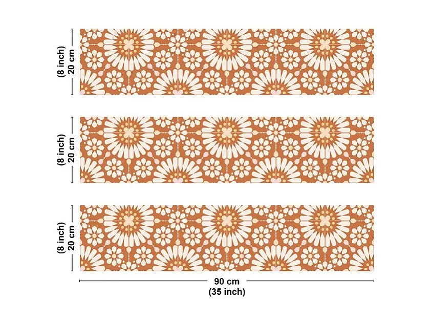 Crédence cuisine en aluminium - effet carreaux de ciment orange - 270x20 cm (en 3 bandeaux)