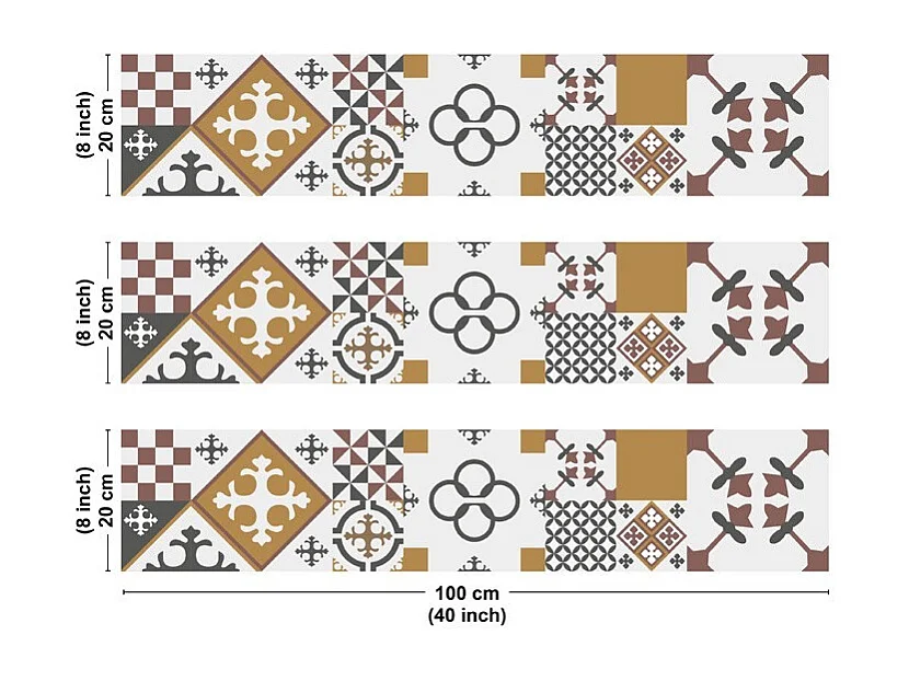 Crédence cuisine en aluminium - effet carreaux de ciment orange - 300x20 cm (en 3 bandeaux)