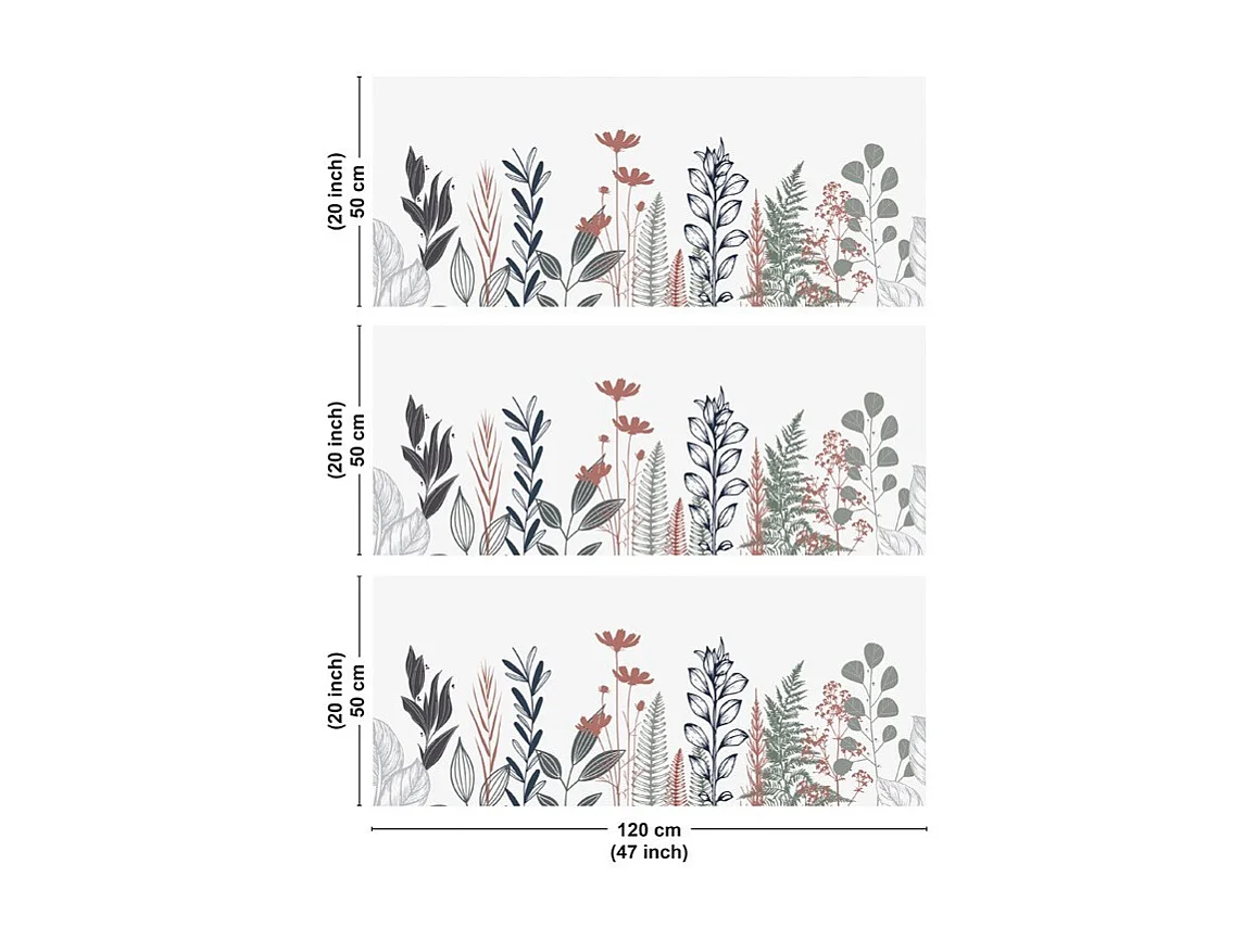 Crédence cuisine en aluminium - floral bleu profond et vert - 360x50 cm (en 3 bandeaux)