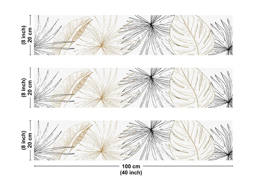 Crédence cuisine en aluminium - floral noir et doré - 300x20 cm (en 3 bandeaux)