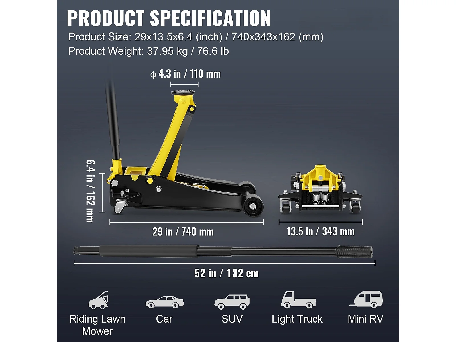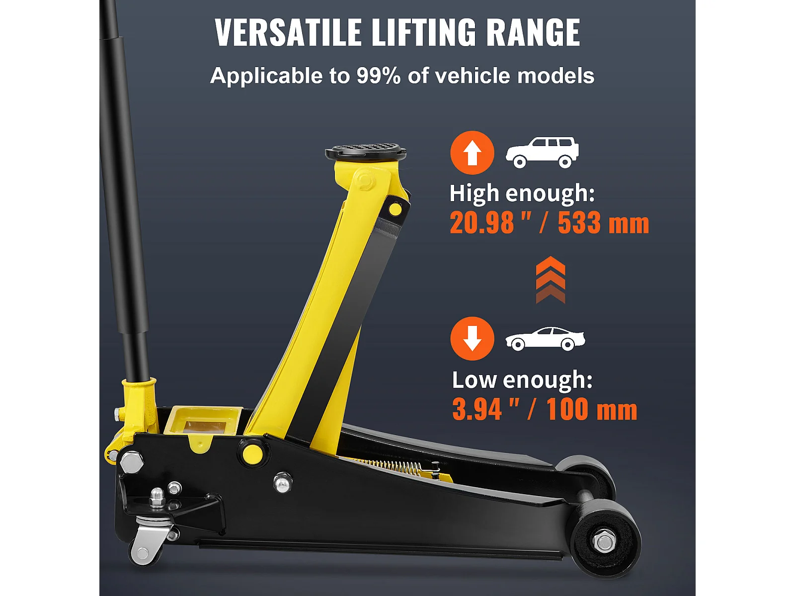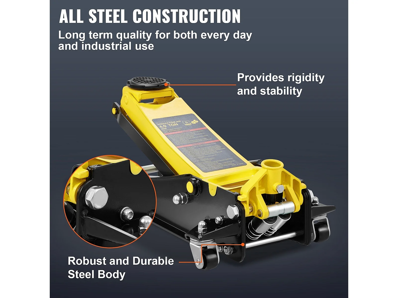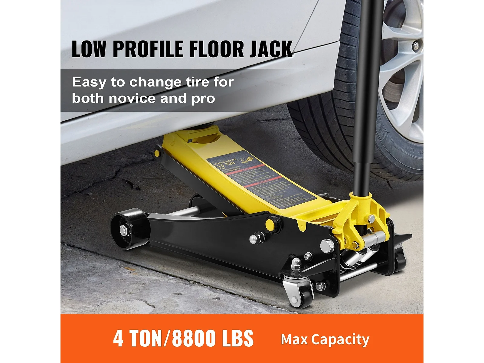 Cric Hydraulique SucceBuy Cric de Sol à Profil Bas de 4 Tonnes, Acier Robuste, Pompe à Double Piston