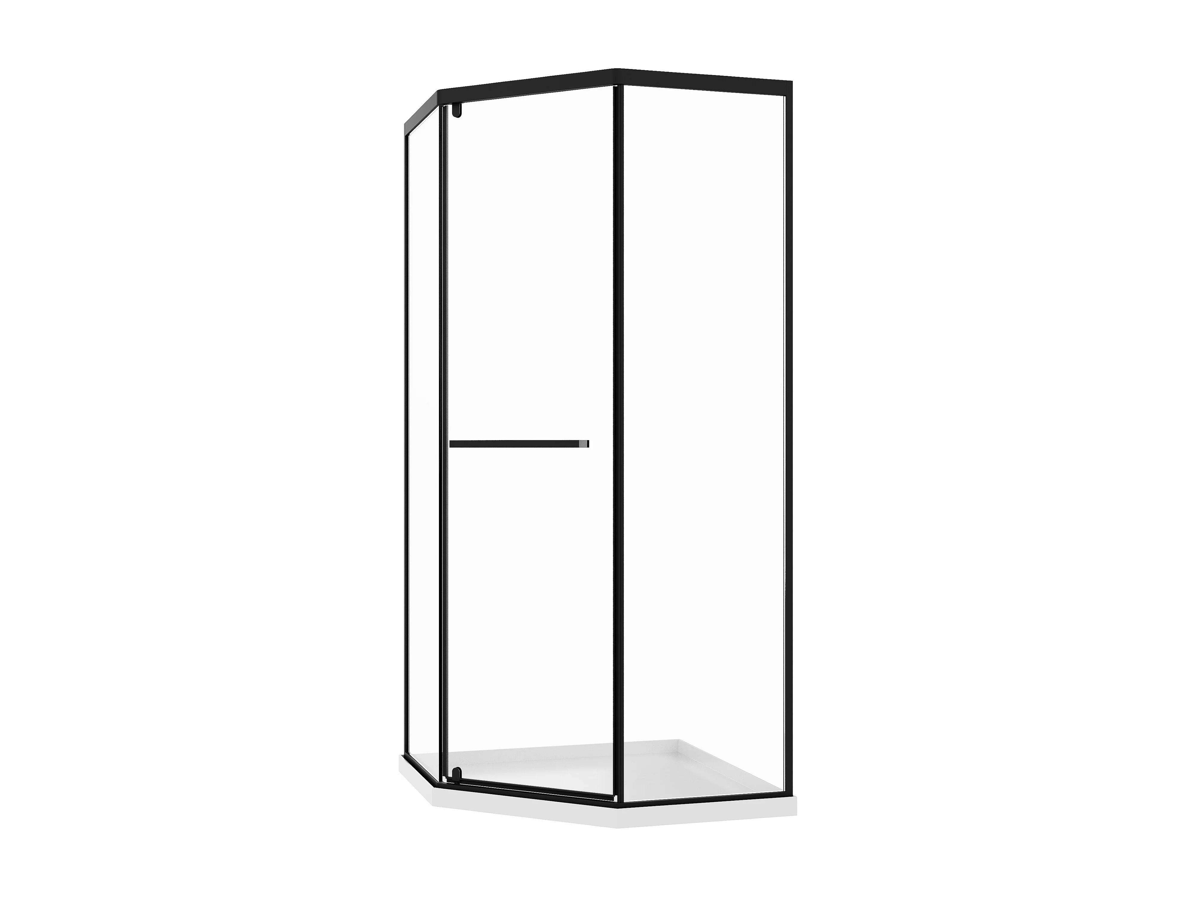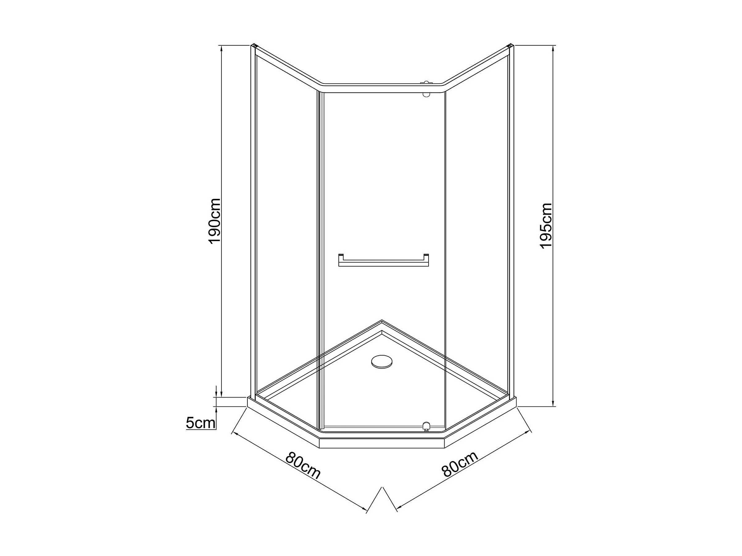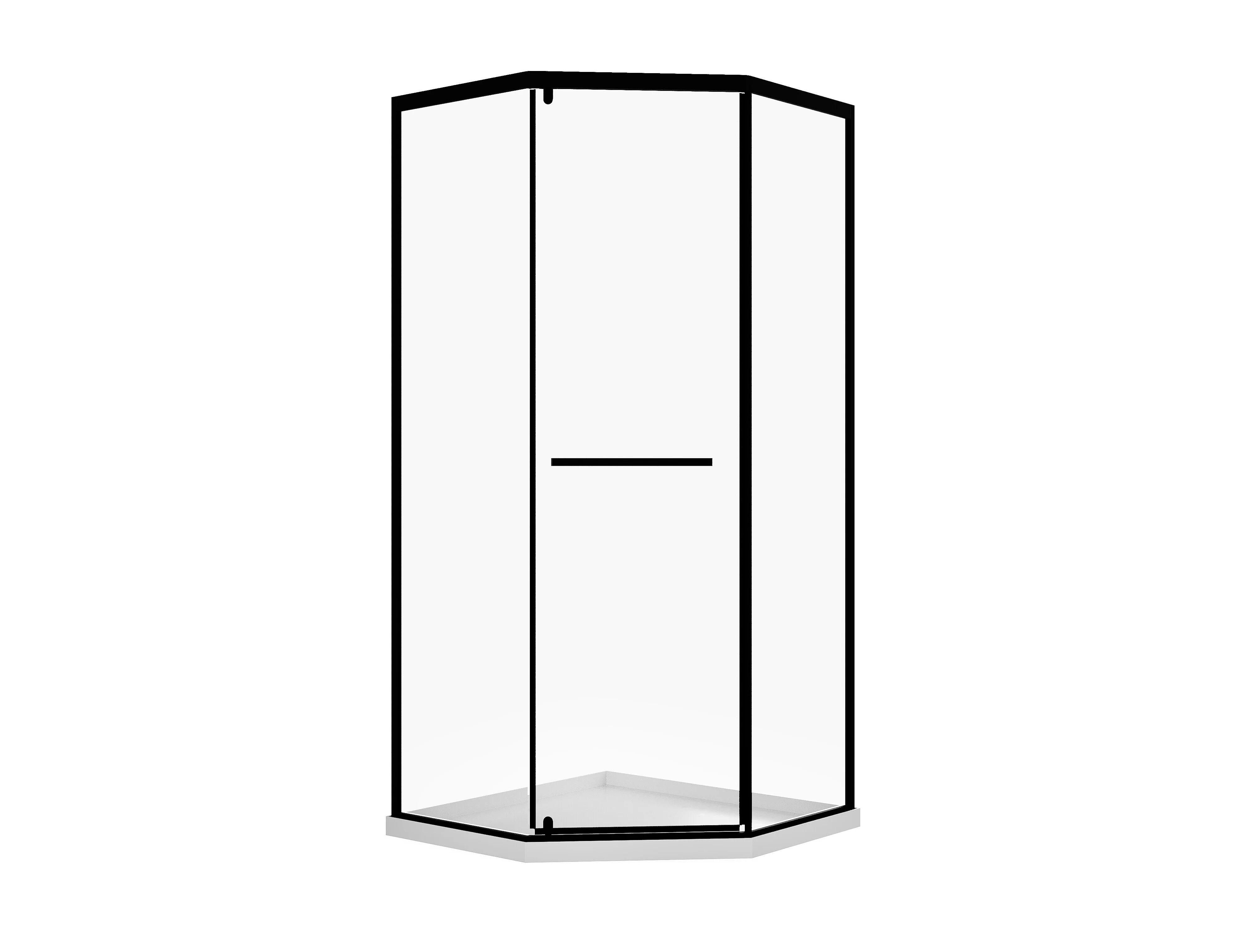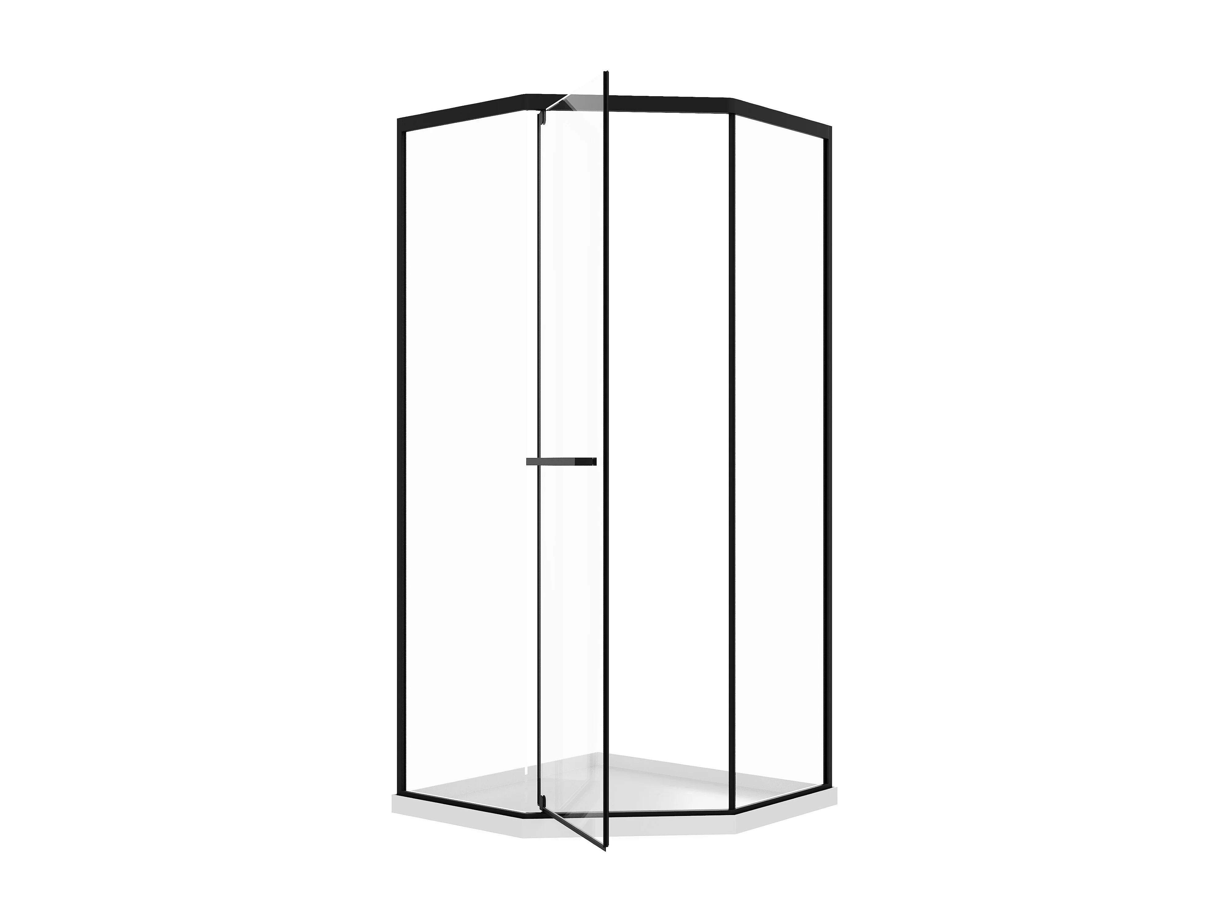 Paroi de douche pentagonale avec receveur - 80 x 80 x 195 cm - Noir mat - CRISTELIO