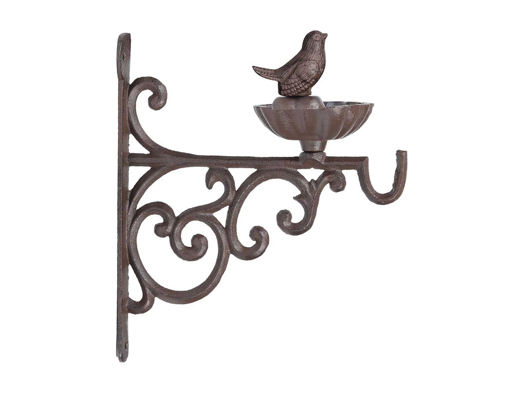 Mangeoire à oiseaux abreuvoir jardin feuille en fonte marron 26cm