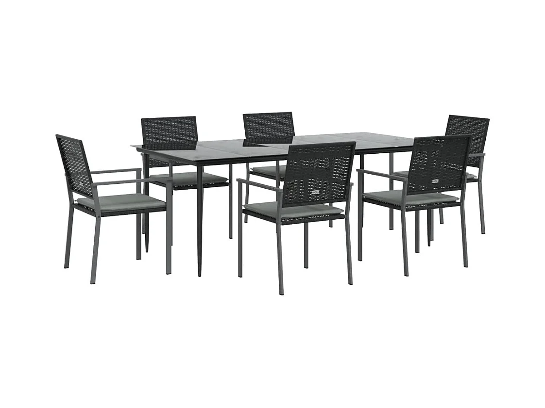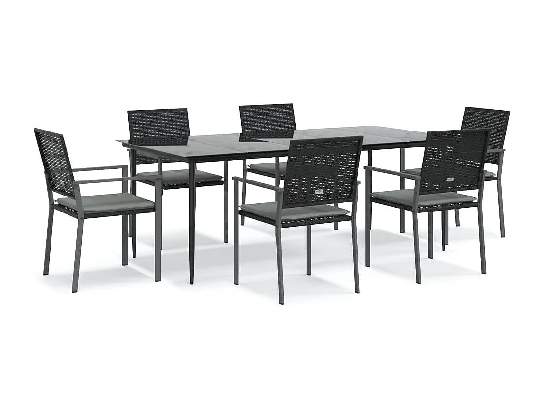 Croughevoe Ensemble à manger de jardin 7 pcs coussins résine tressée acier