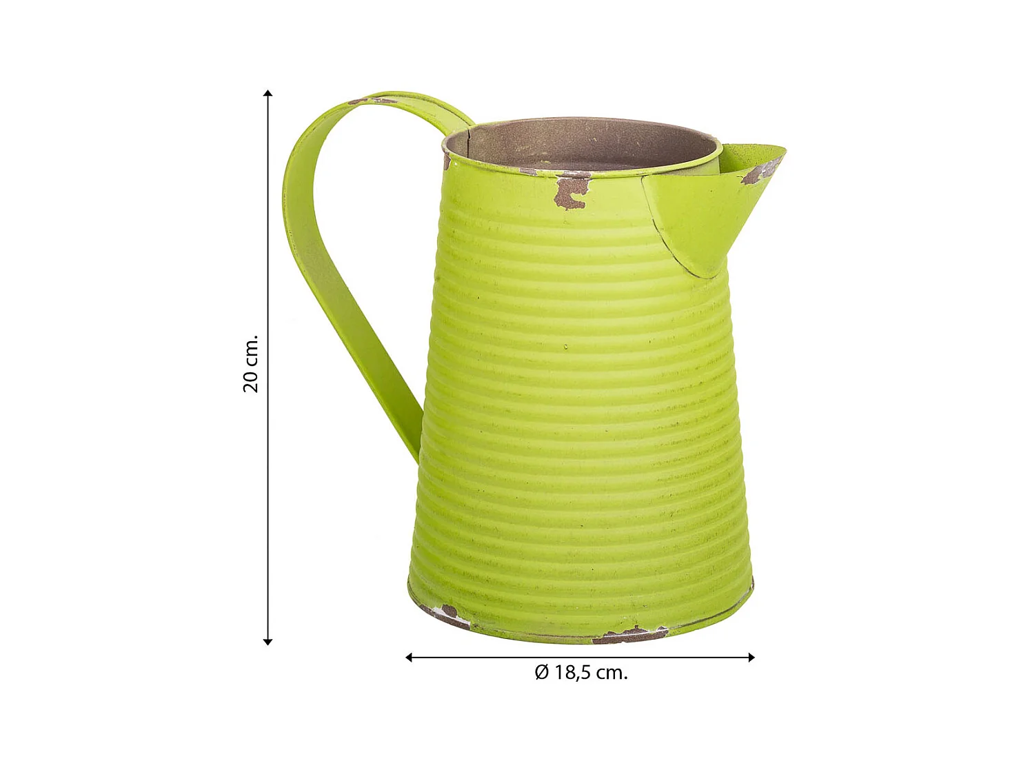 Cruche en métal vert 20xd13x17/18.5h td:10