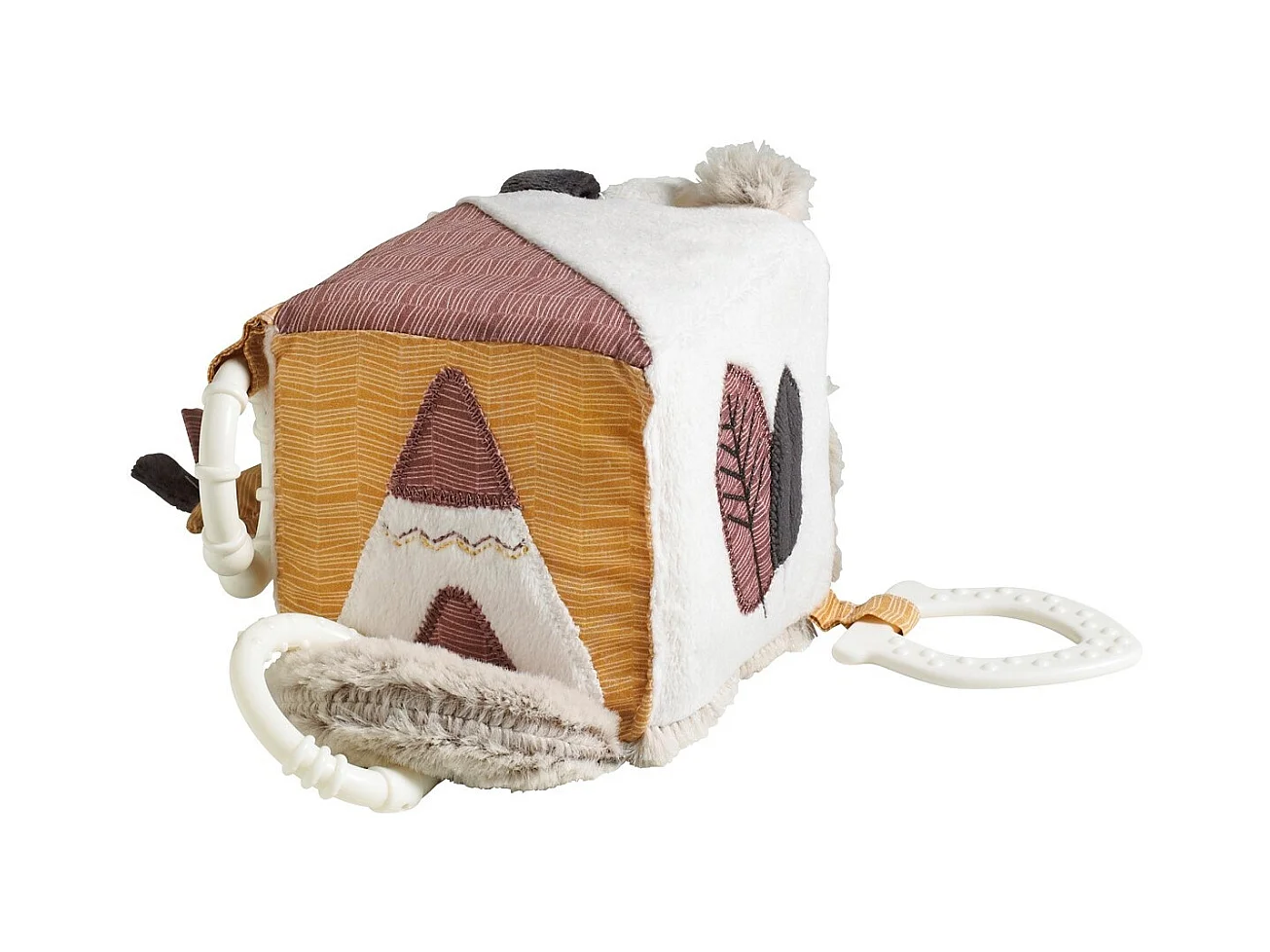 Cube d'activité bébé en velours beige TIMOUKI - Sauthon