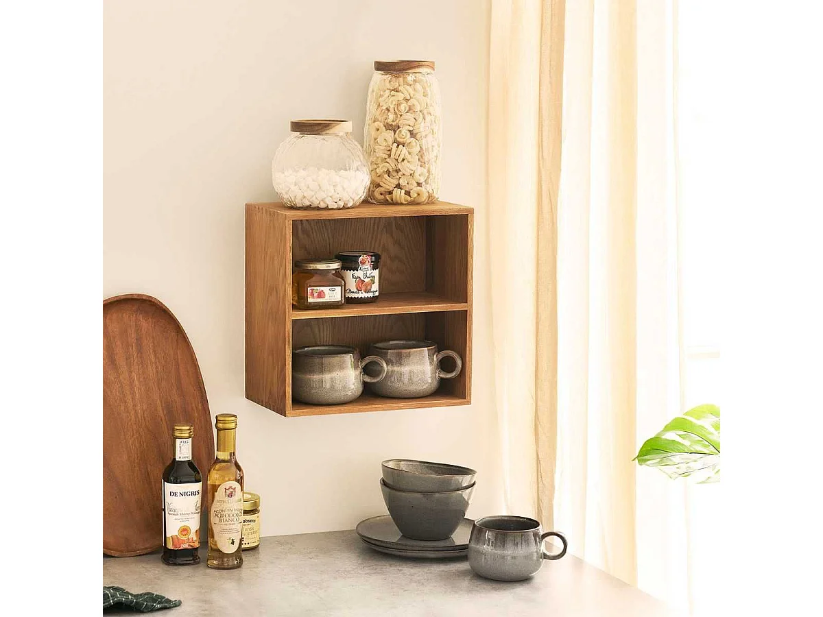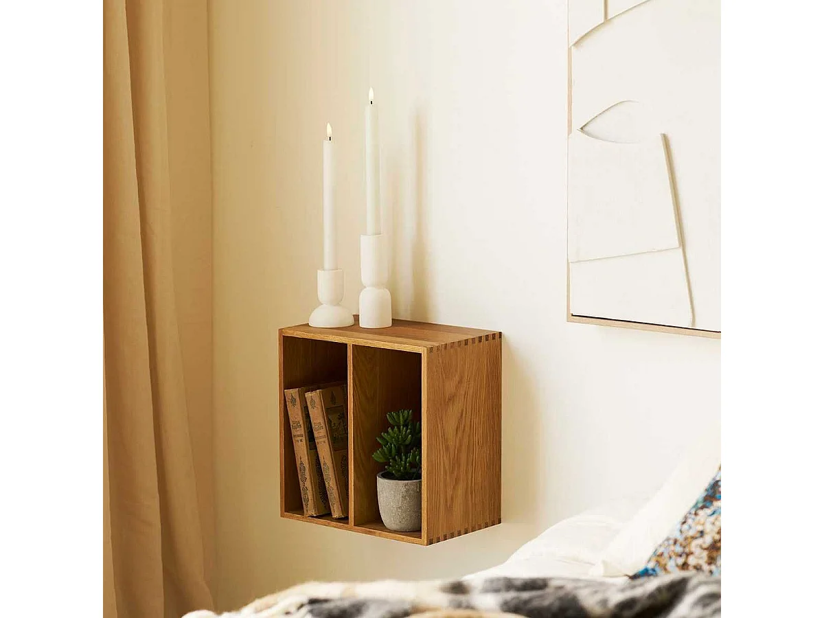 Cube de rangement 2 niveaux mural ou à poser en chêne massif - VALLY