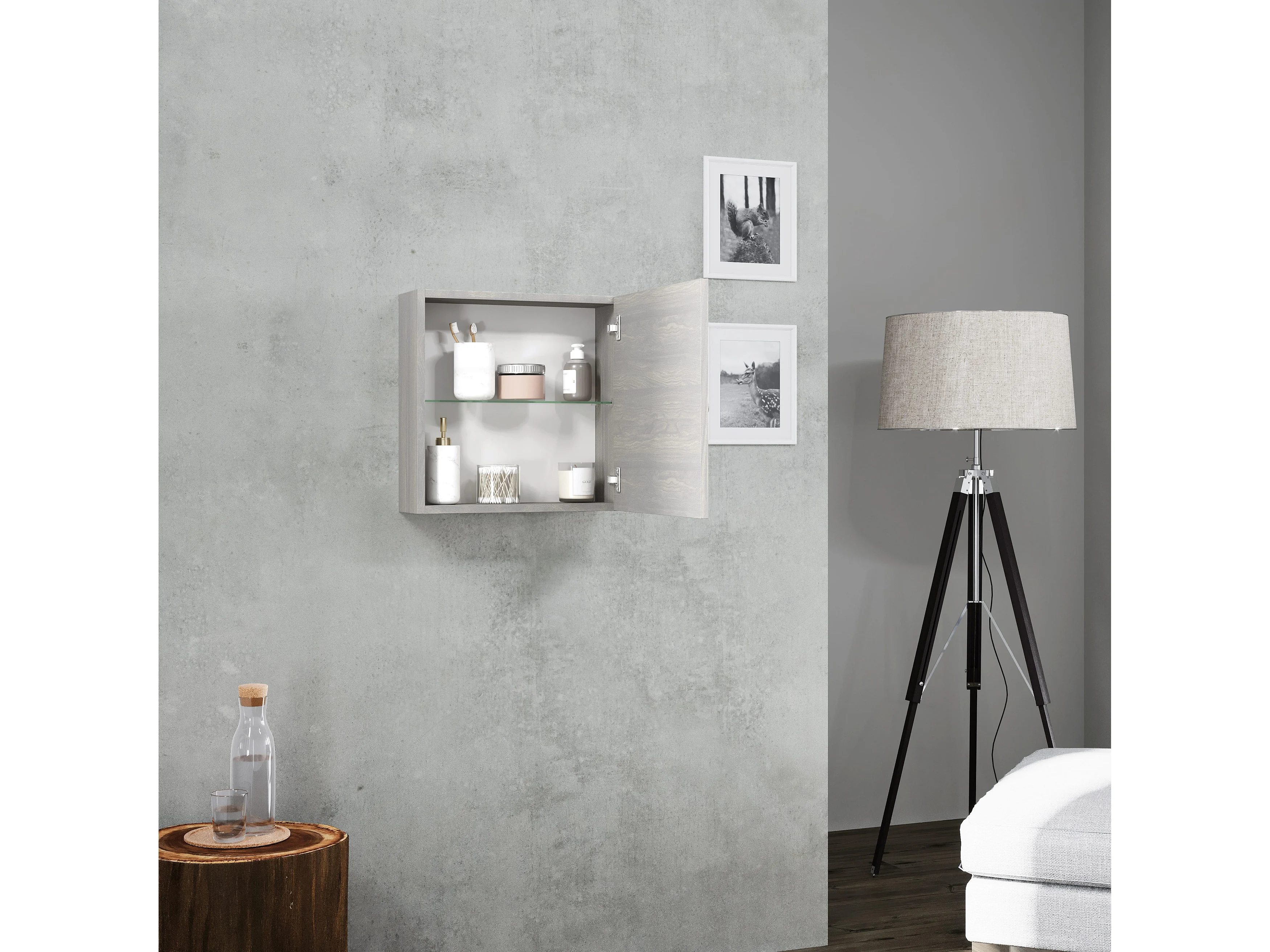 Cube Mural 45Cm Avec Porte Gris Aspect Bois | Facile