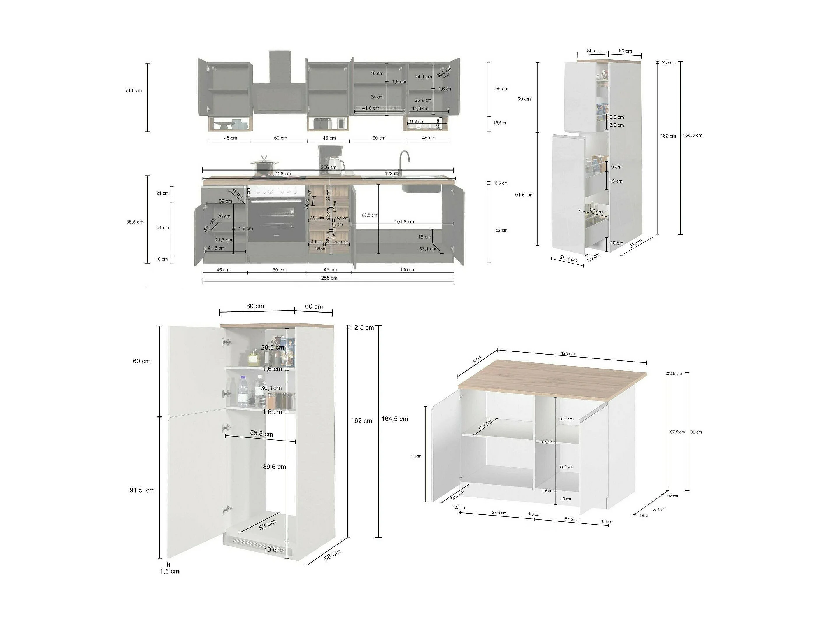 Cuisine Complète Appiah, Modulable Fabriquée en Italie, Noir Anthracite