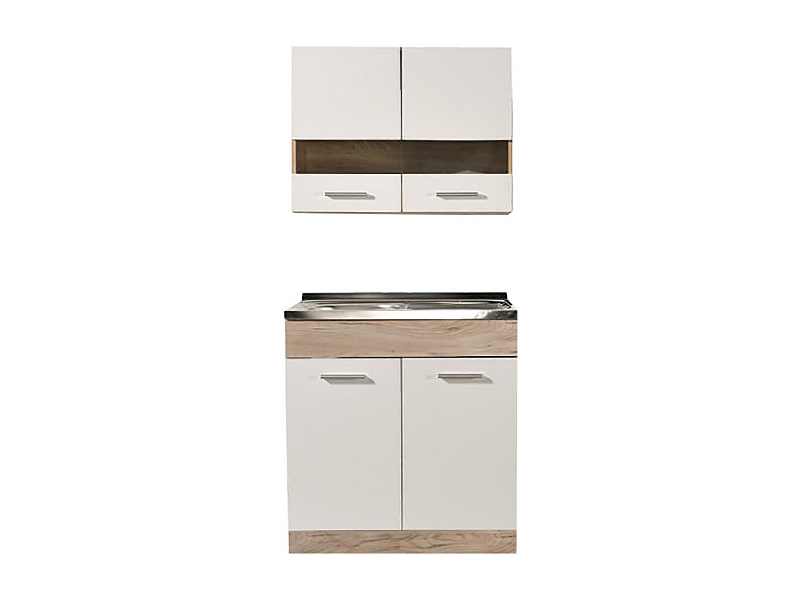 Cuisine 2 éléments couleur chêne/blanc - Longueur 80 x Profondeur 51.6 x Hauteur 206.5 cm
