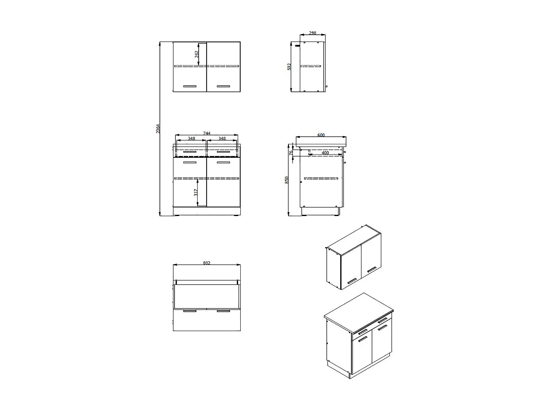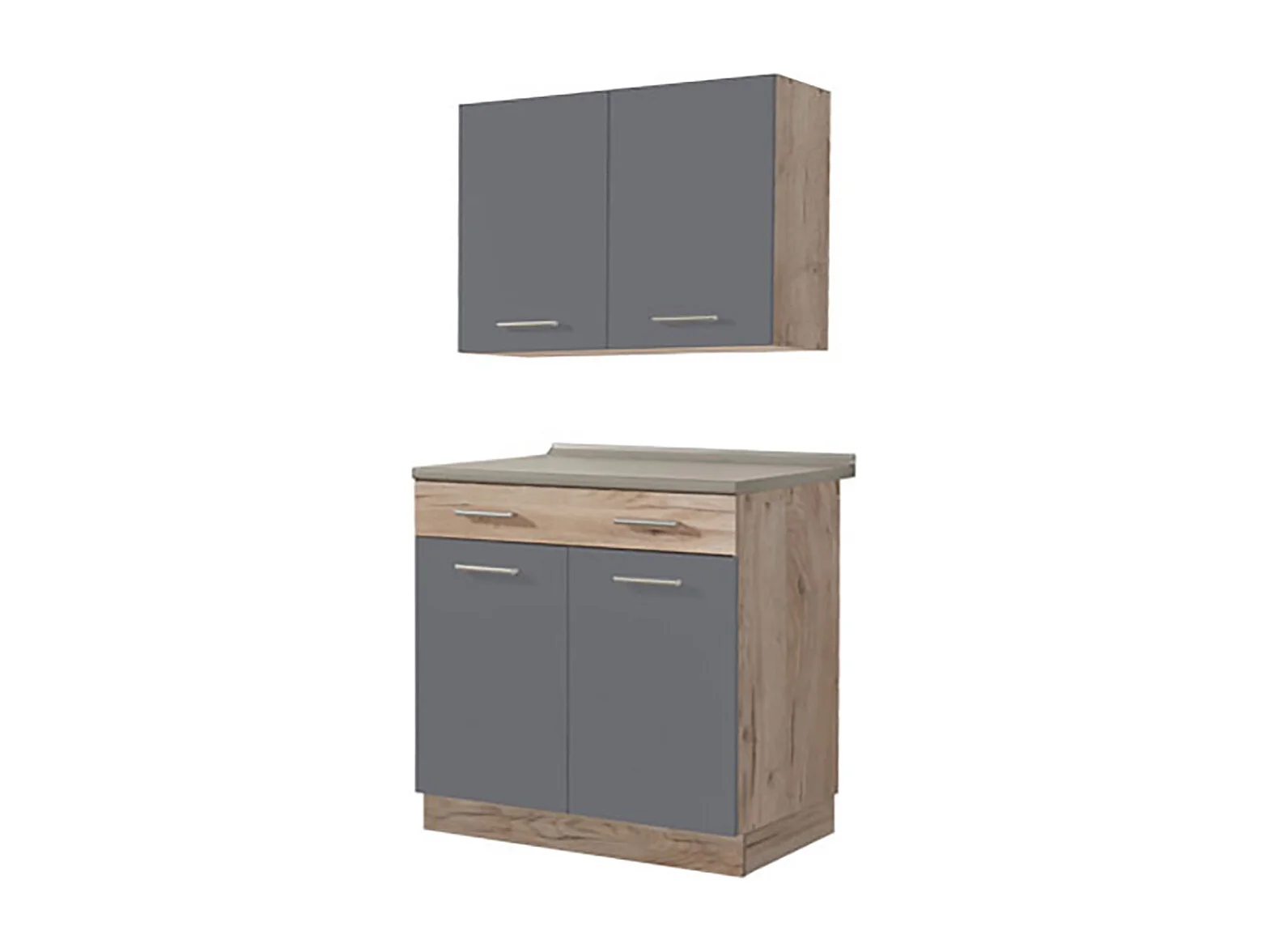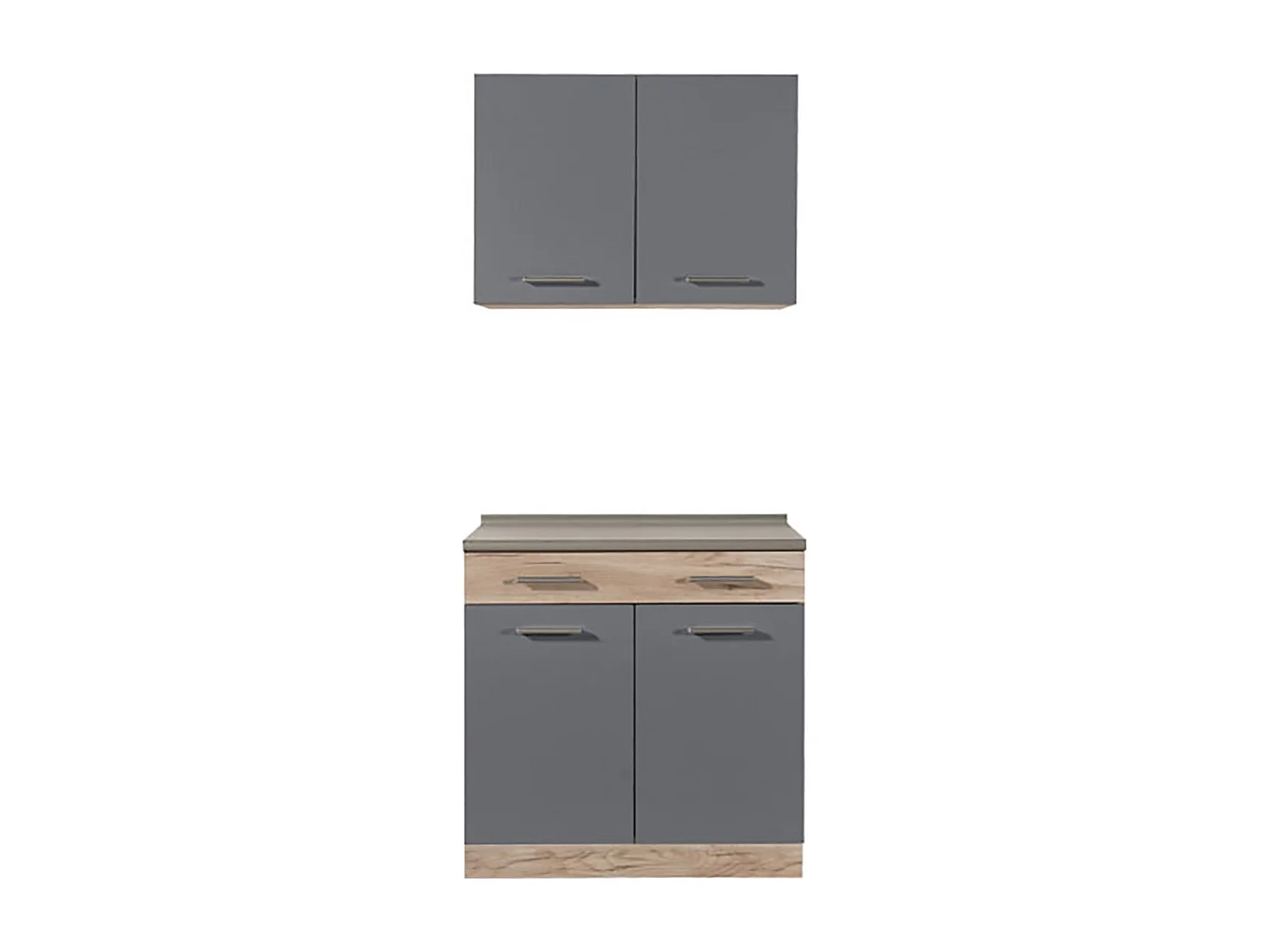 Cuisine 2 éléments couleur chêne/gris avec plan de travail - Longueur 80 x Profondeur 51.6/60 x Hauteur 206.5 cm