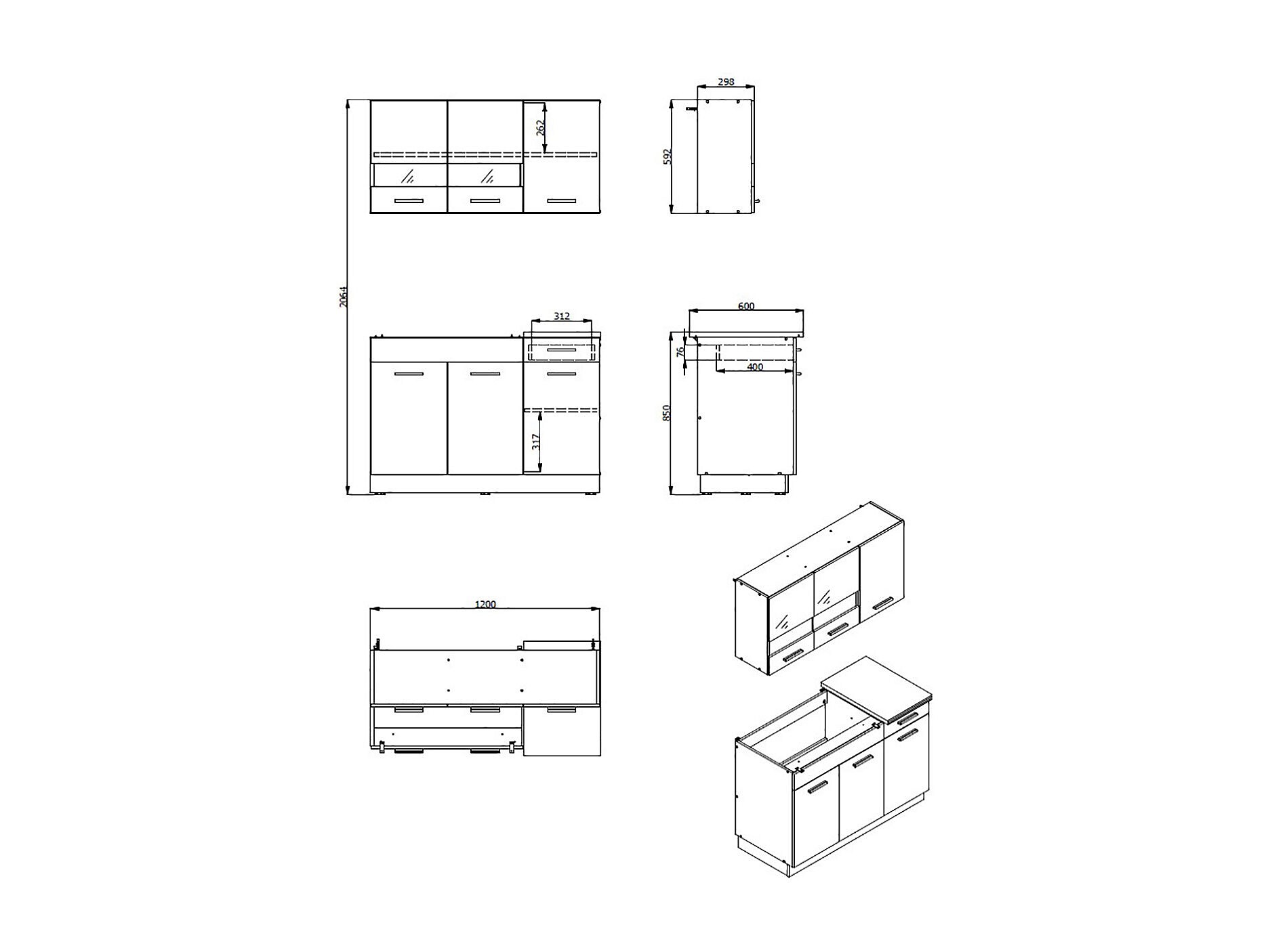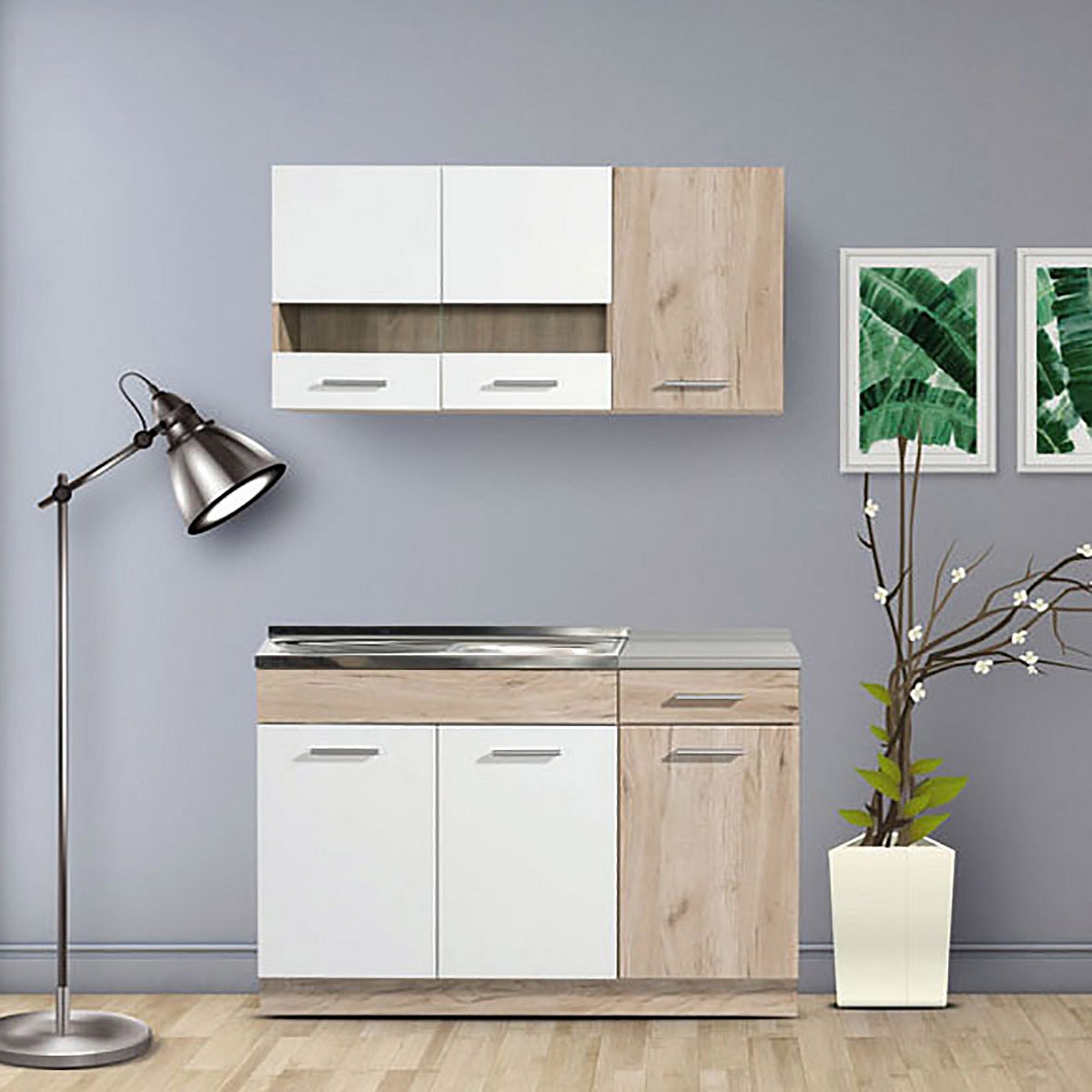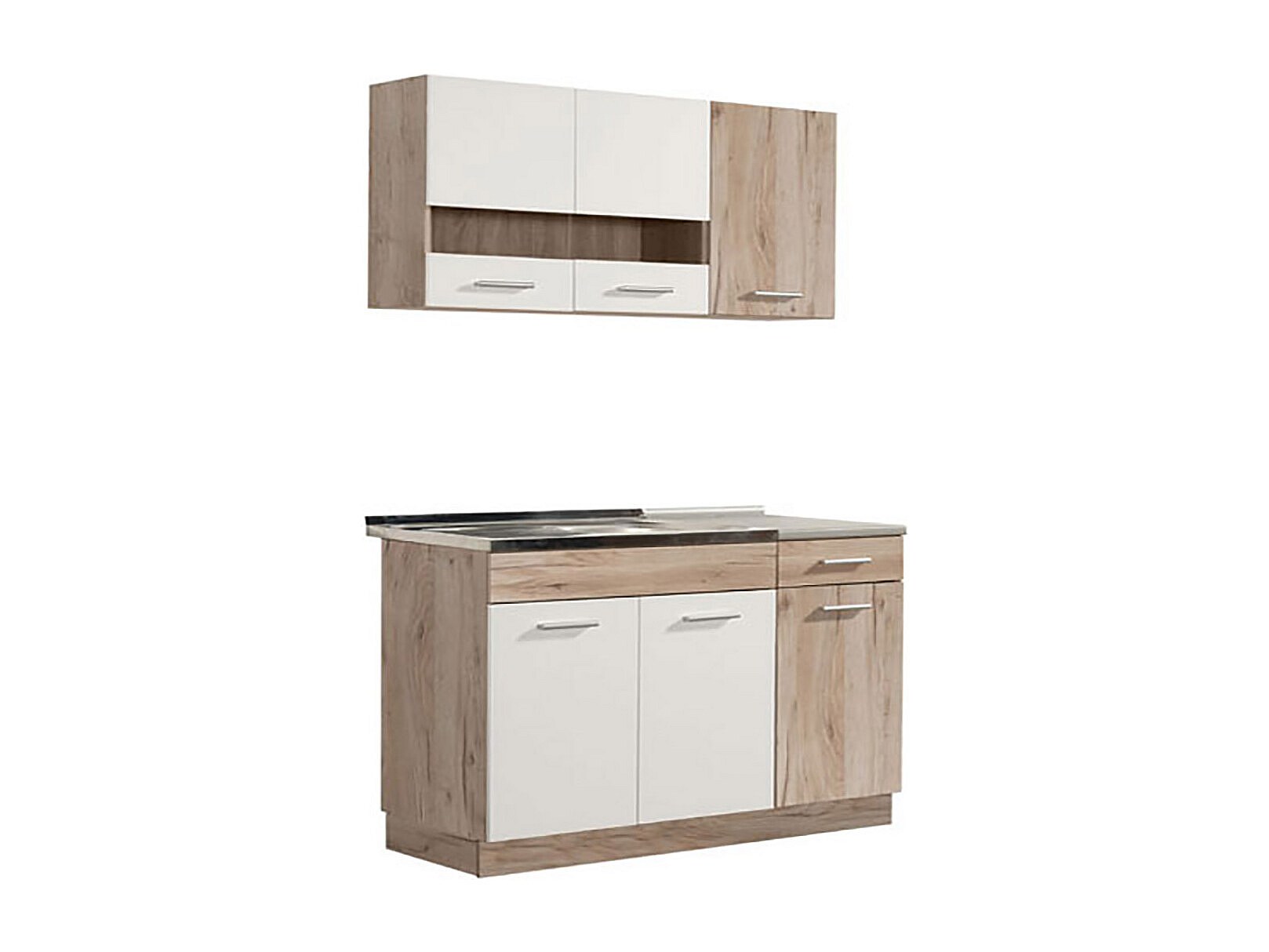 Cuisine 4 éléments couleur chêne/blanc avec plan de travail - Longueur 120 x Profondeur 51.6/60 x Hauteur 206.5 cm