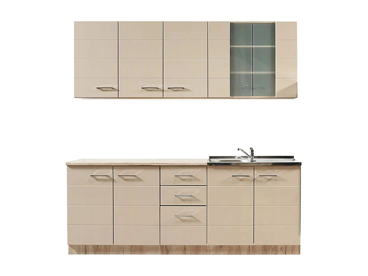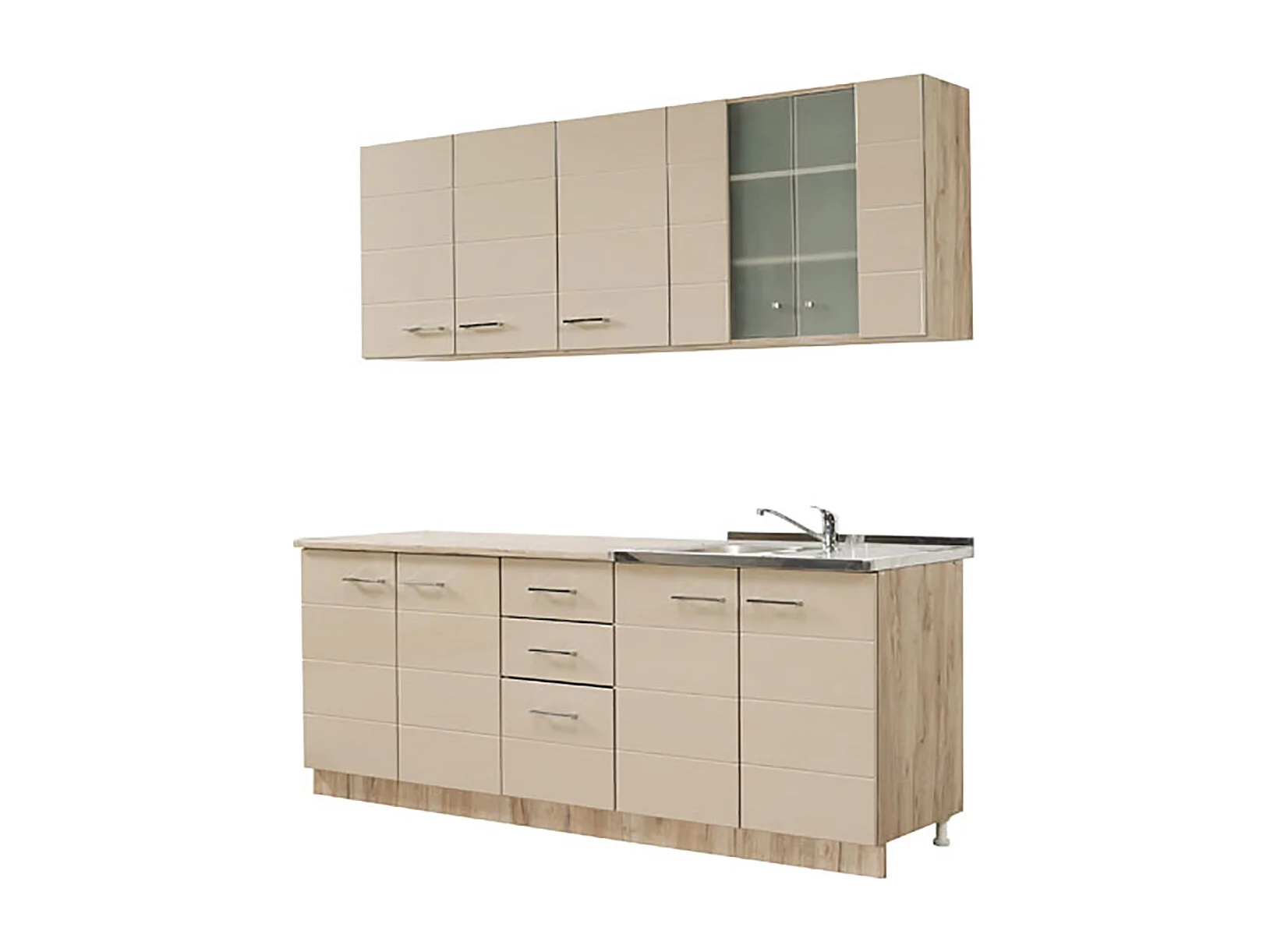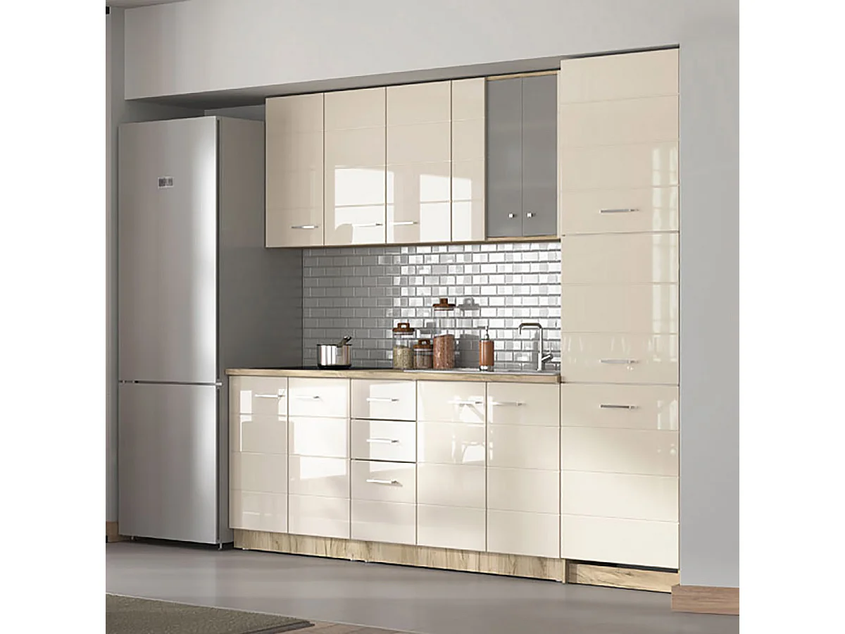 Cuisine 6 éléments couleur beige brillant / chêne avec plan de travail - Longueur 200 x Profondeur 51/60 x Hauteur 200 cm