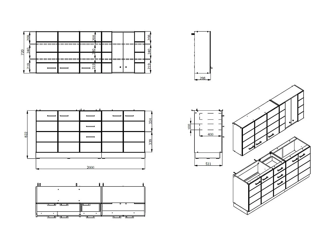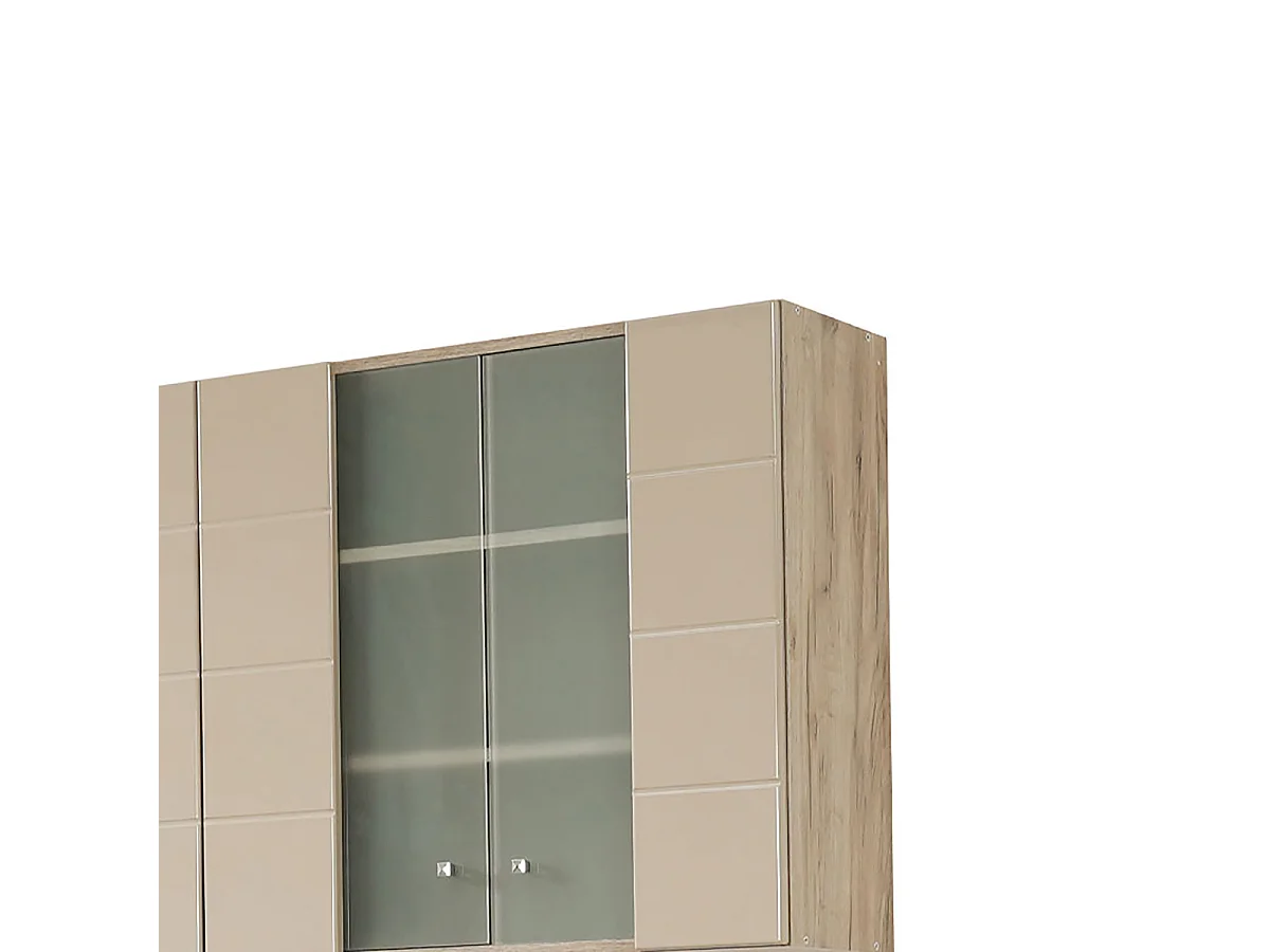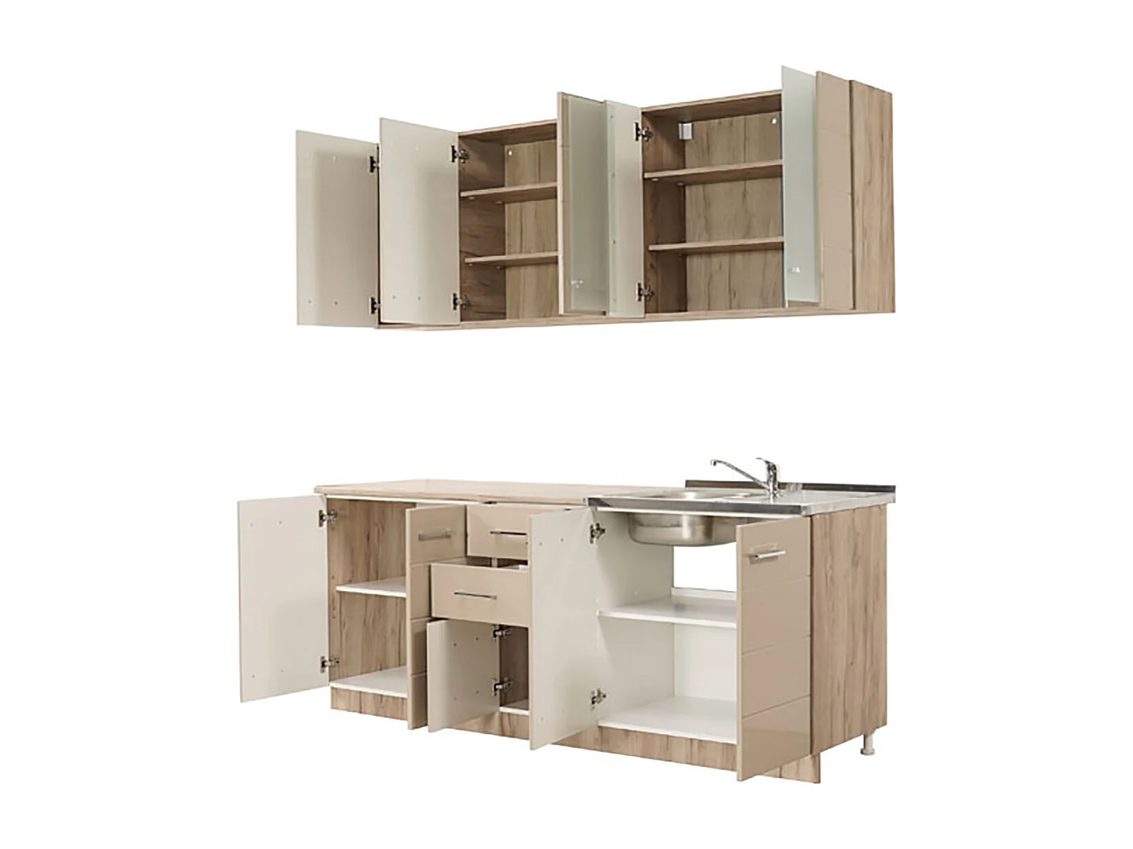 Cuisine 6 éléments couleur beige brillant / chêne avec plan de travail - Longueur 200 x Profondeur 51/60 x Hauteur 200 cm