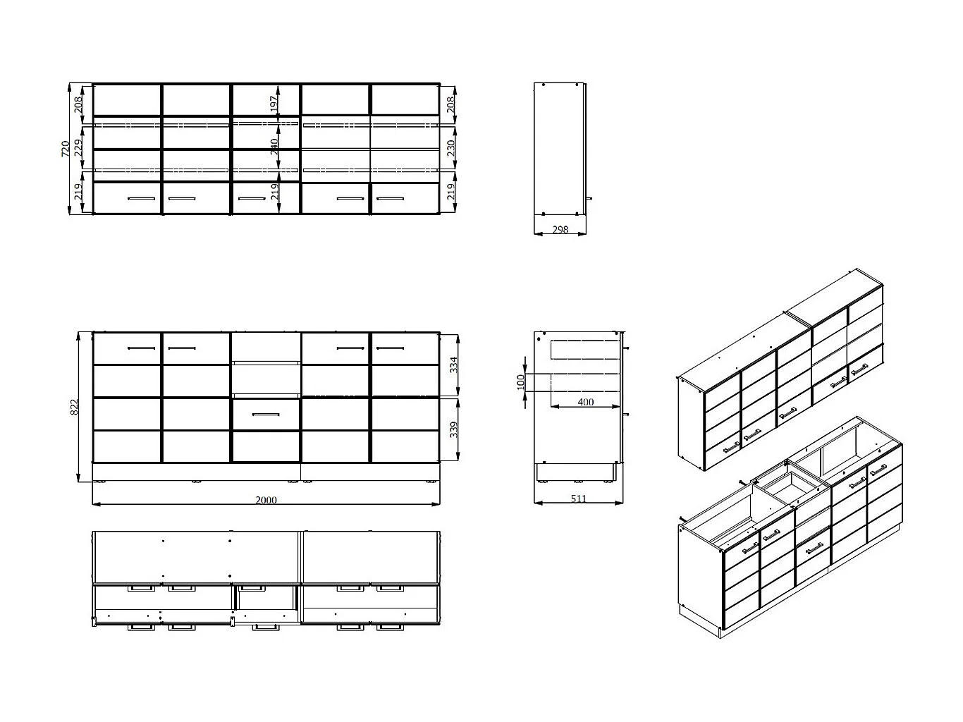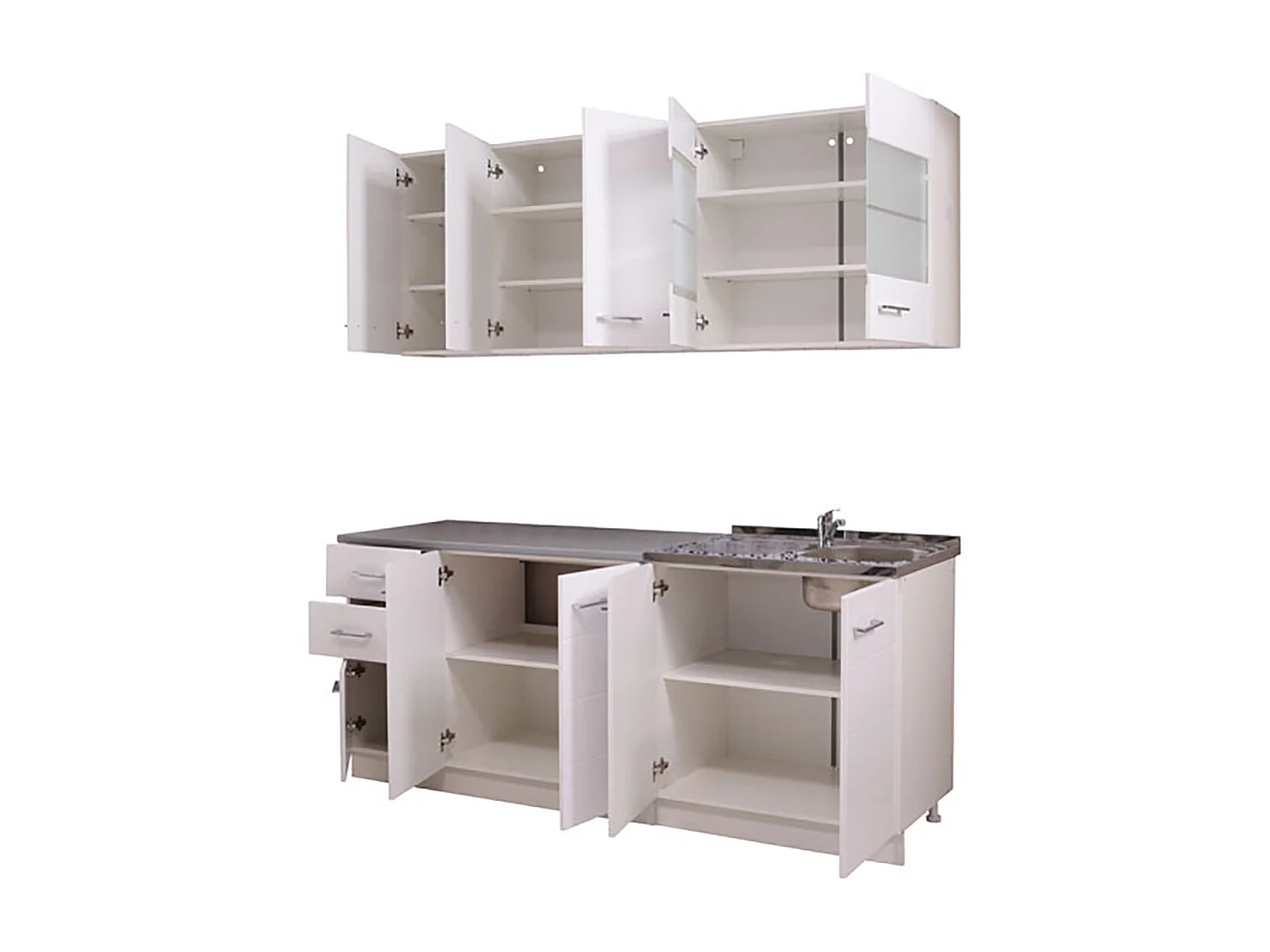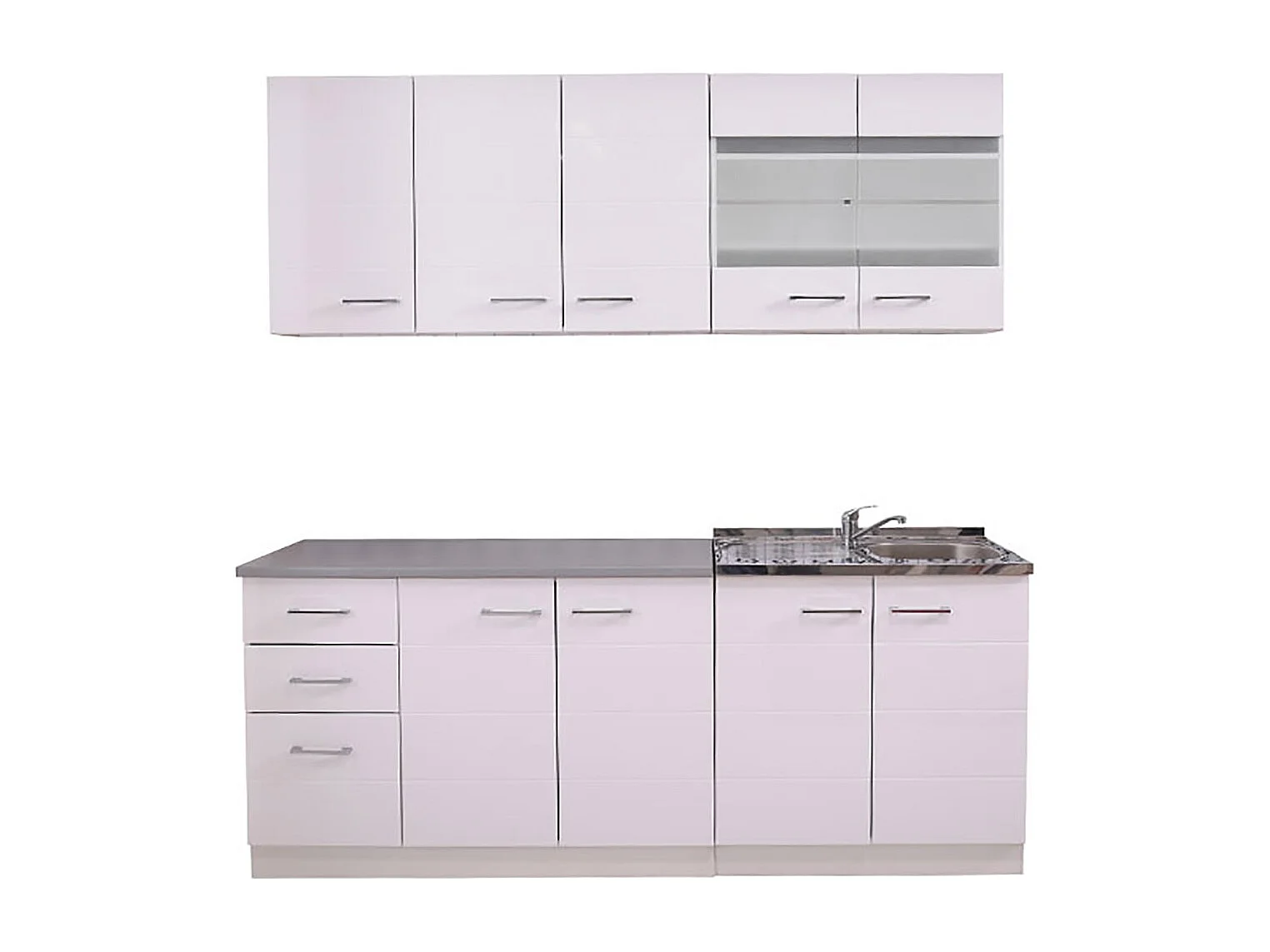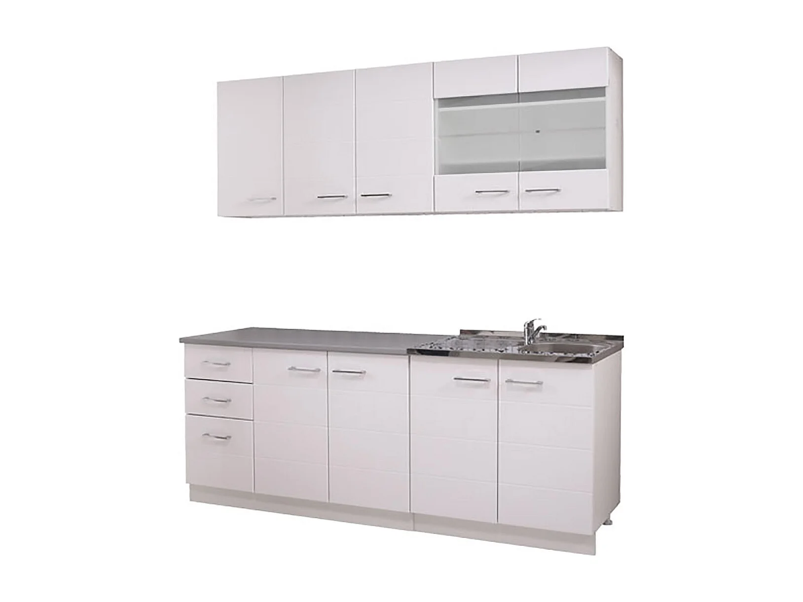 Cuisine 6 éléments couleur blanc brillant avec plan de travail - Longueur 200 x Profondeur 51/60 x Hauteur 200 cm