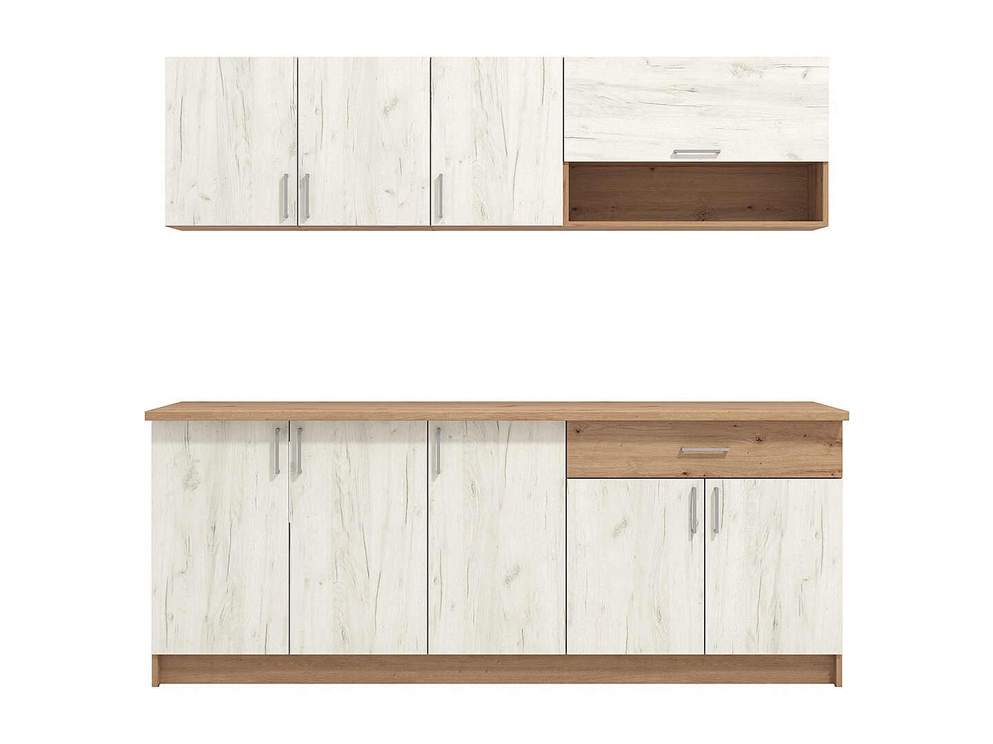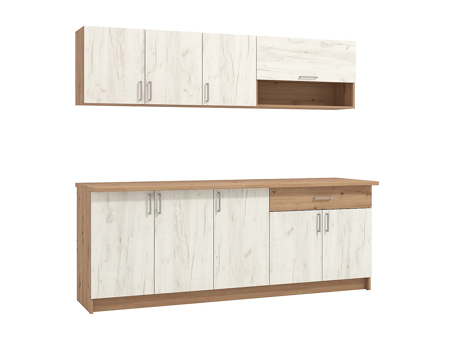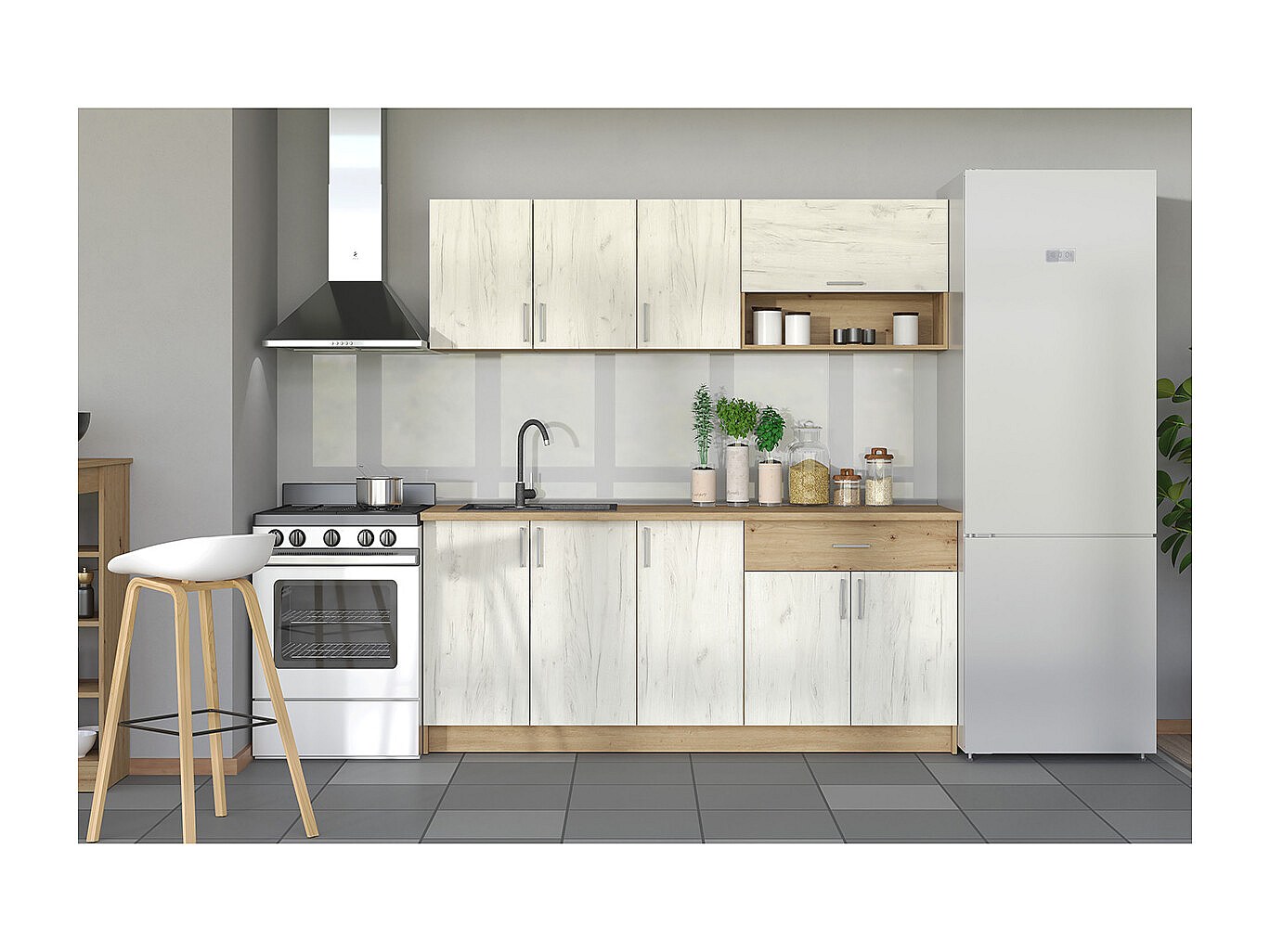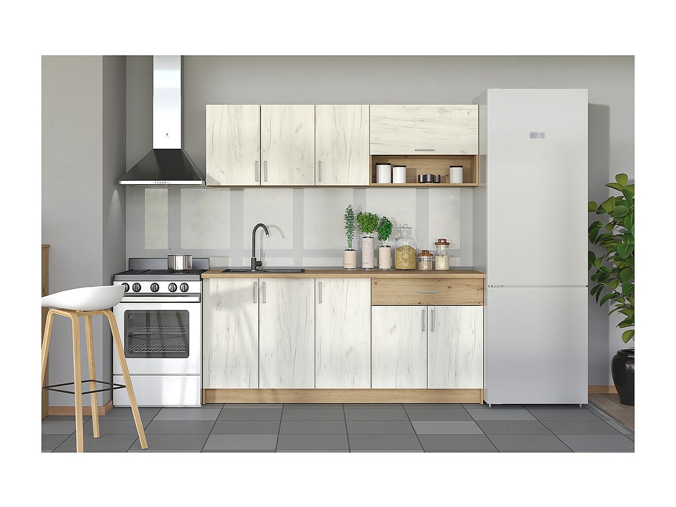 Cuisine 6 éléments couleur Blanc / chêne artisan avec plan de travail - Longueur 200 x Profondeur 46/60 x Hauteur 200 cm