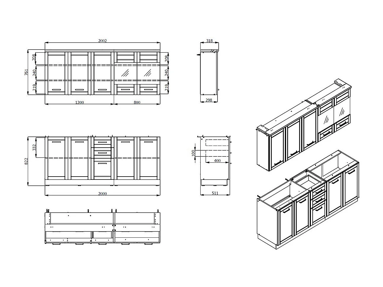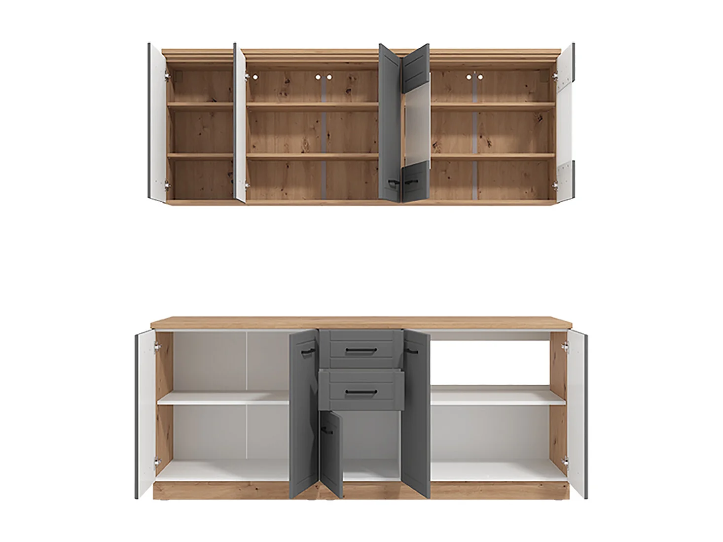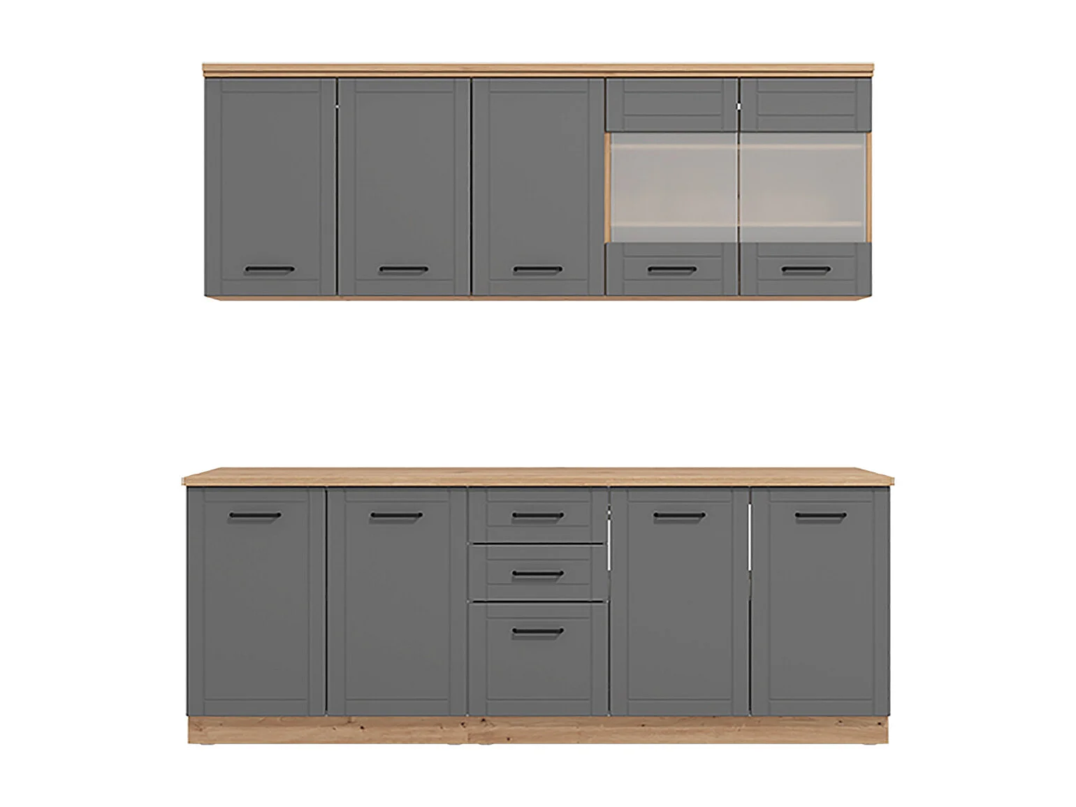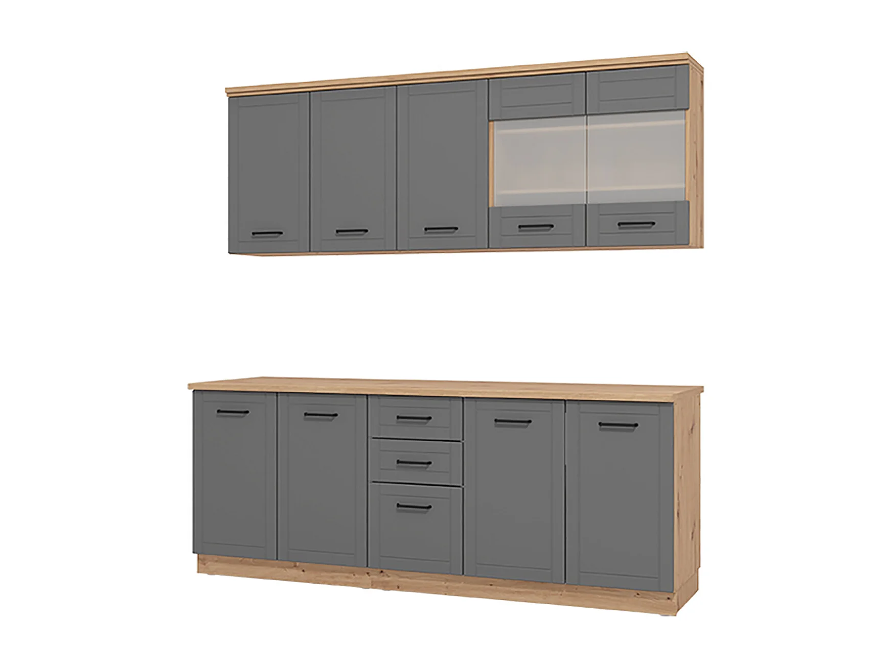Cuisine 6 éléments couleur gris mat / chêne artisan avec plan de travail - Longueur 200 x Profondeur 51/60 x Hauteur 200 cm