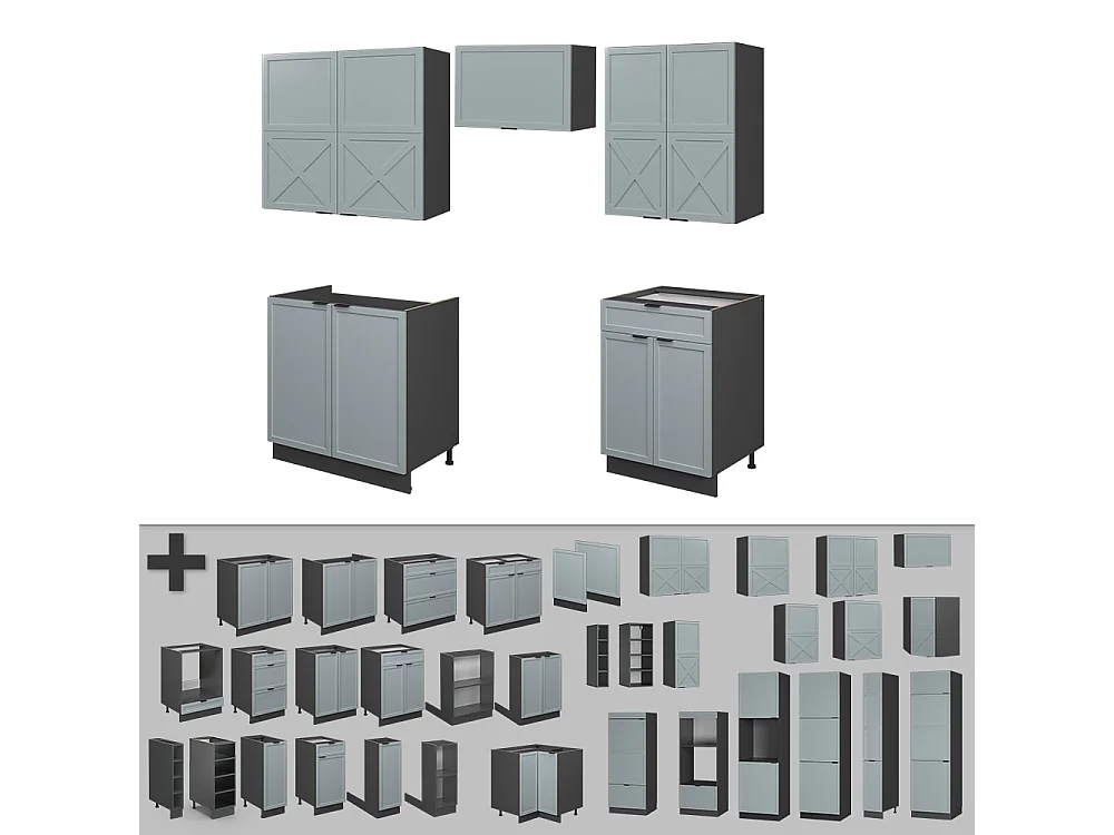 Cuisine bleu clair-gris/anthracite 200x60x81.6 fame-line