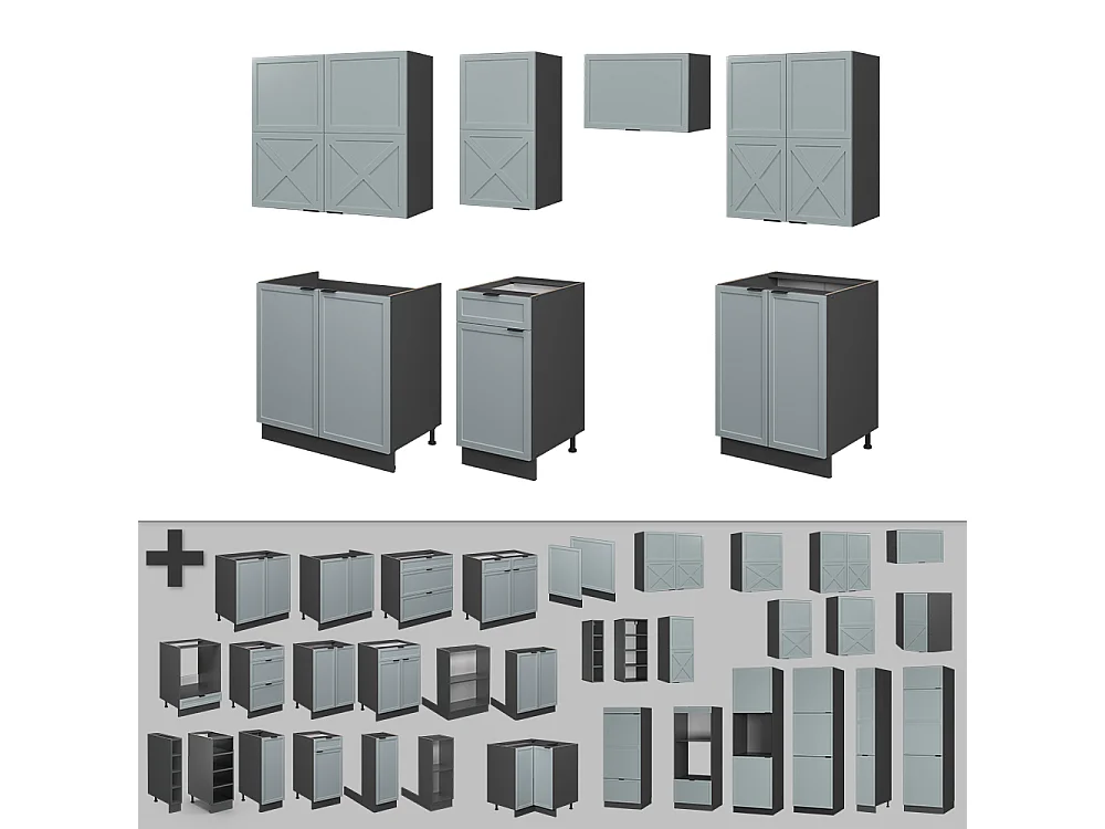 Cuisine bleu clair-gris/anthracite 240x60x81.6 fame-line