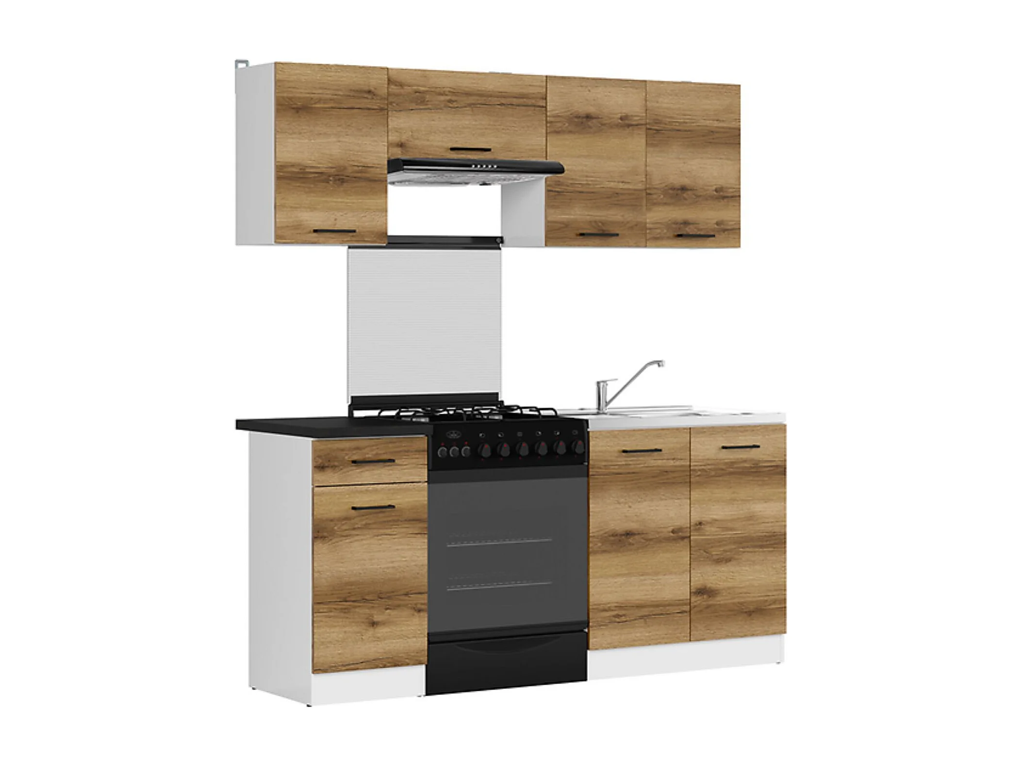 Cuisine complète 180 cm,Ensemble de meuble de cuisine coloris Chêne delano/Blanc, plan de travail Noir inclus