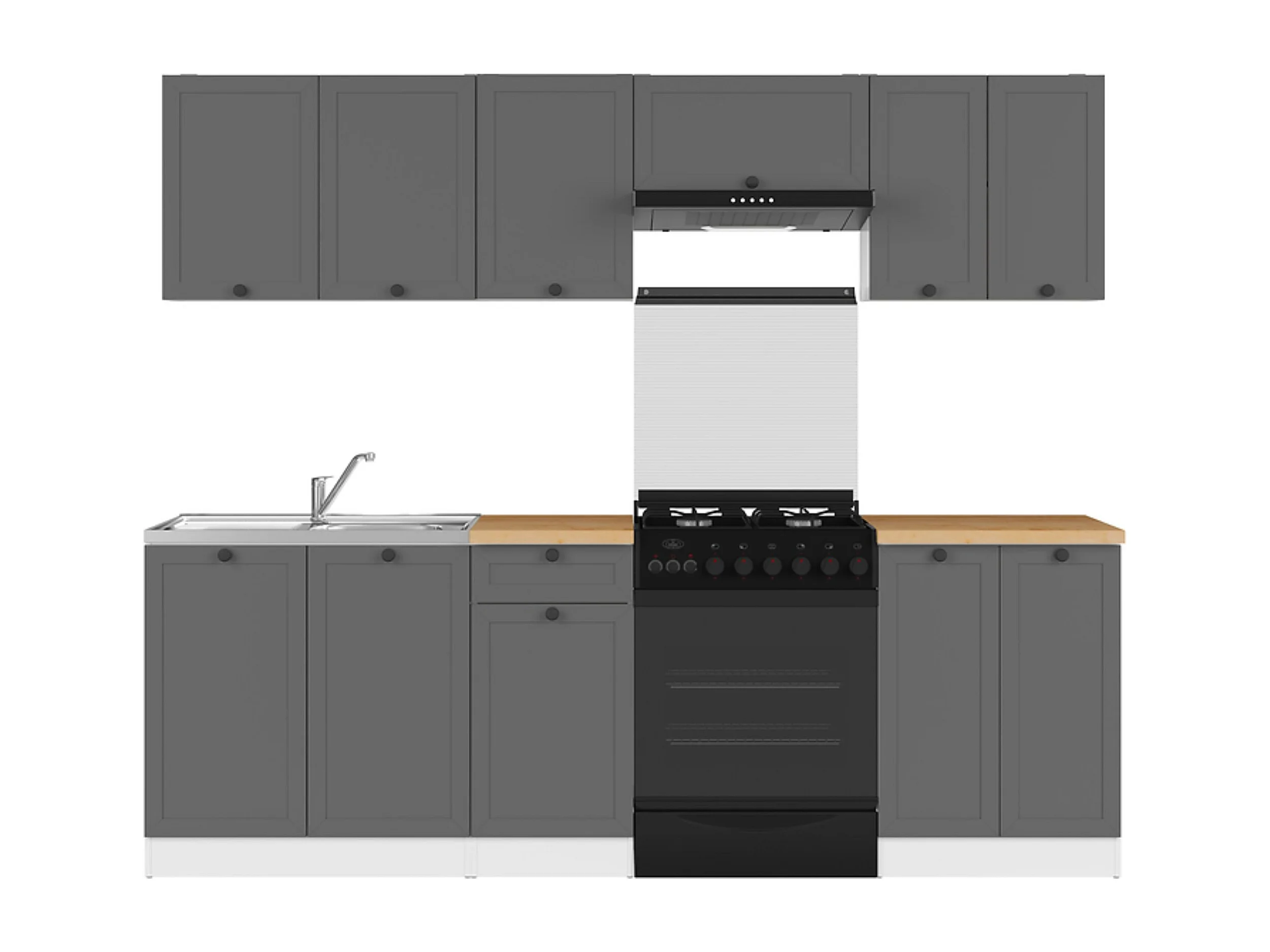 Cuisine complète 240 cm,Ensemble de meuble de cuisine coloris gris graphite/blanc, plan de travail coloris Chêne doré inclus