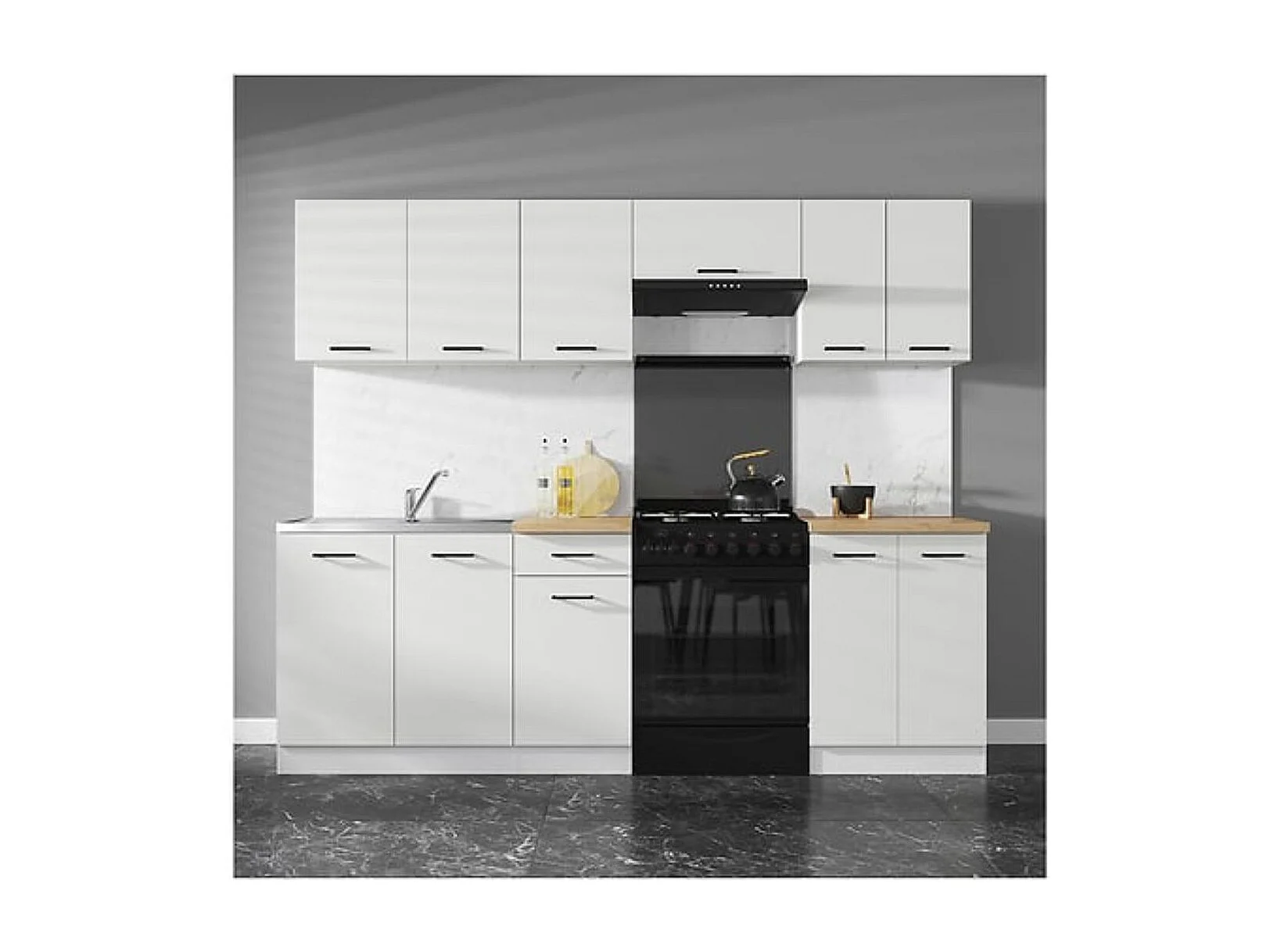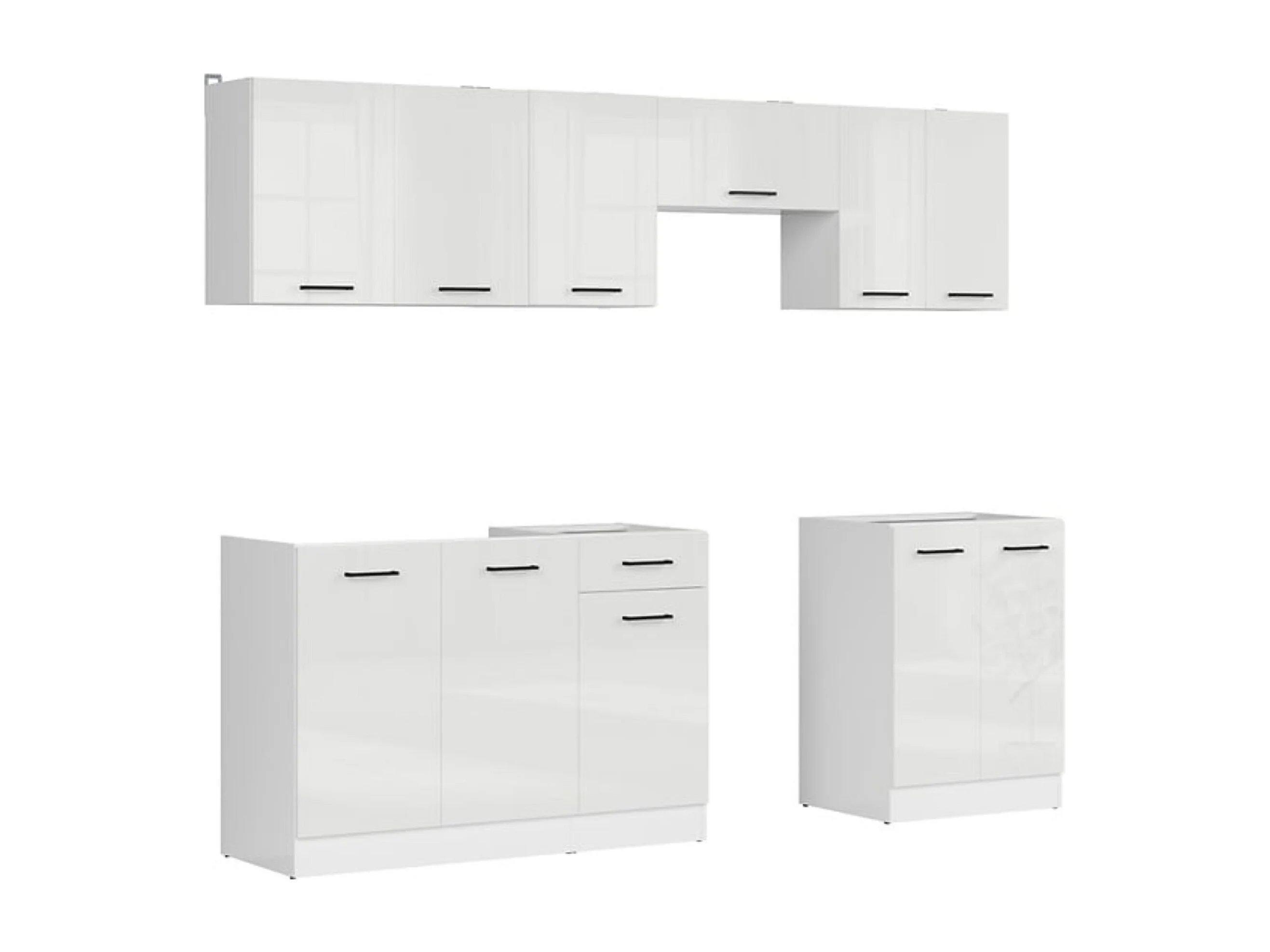 Cuisine complète 240 cm,Ensemble de meuble de cuisine finition Blanc laquée craie, sans plan de travail
