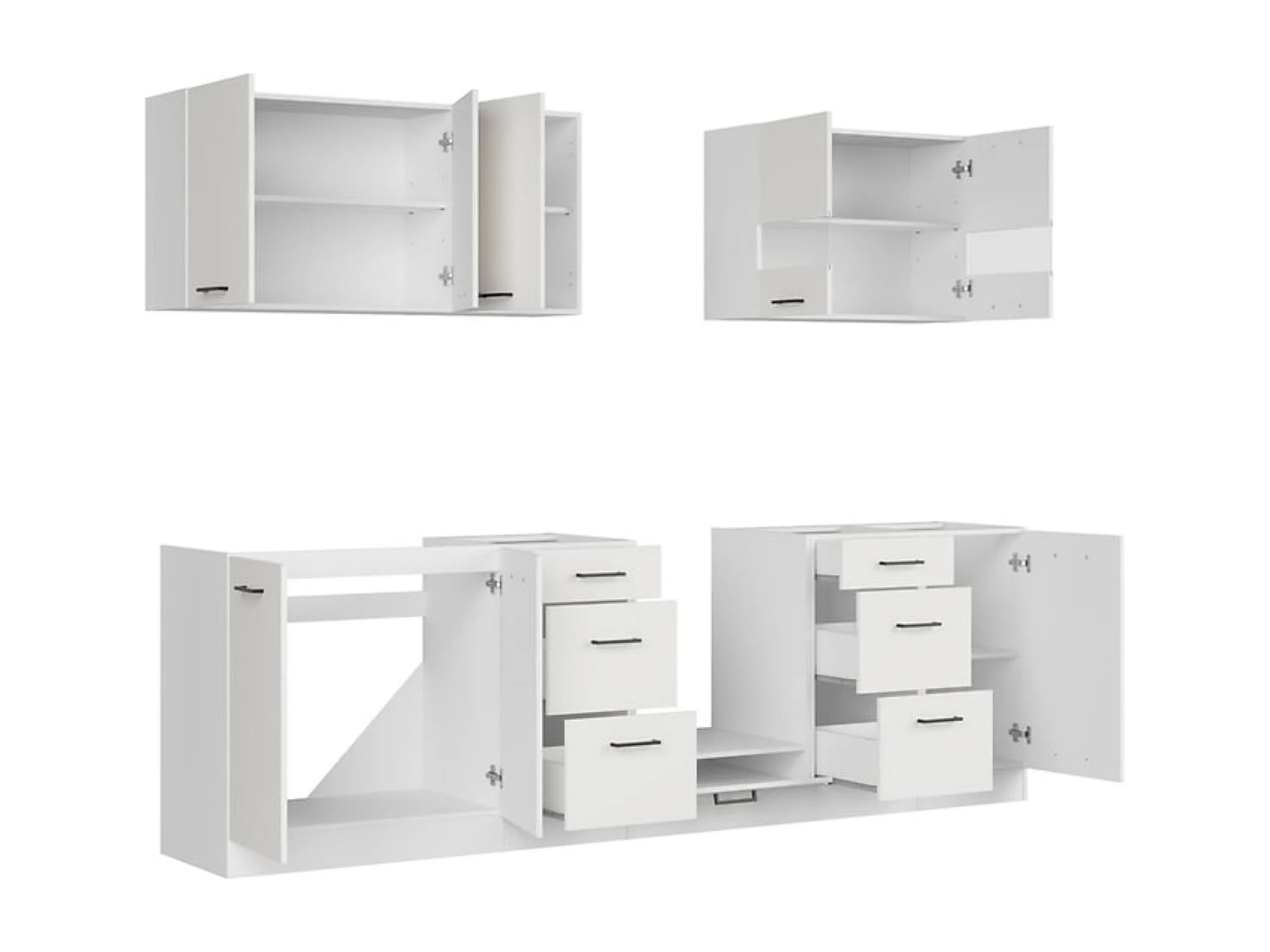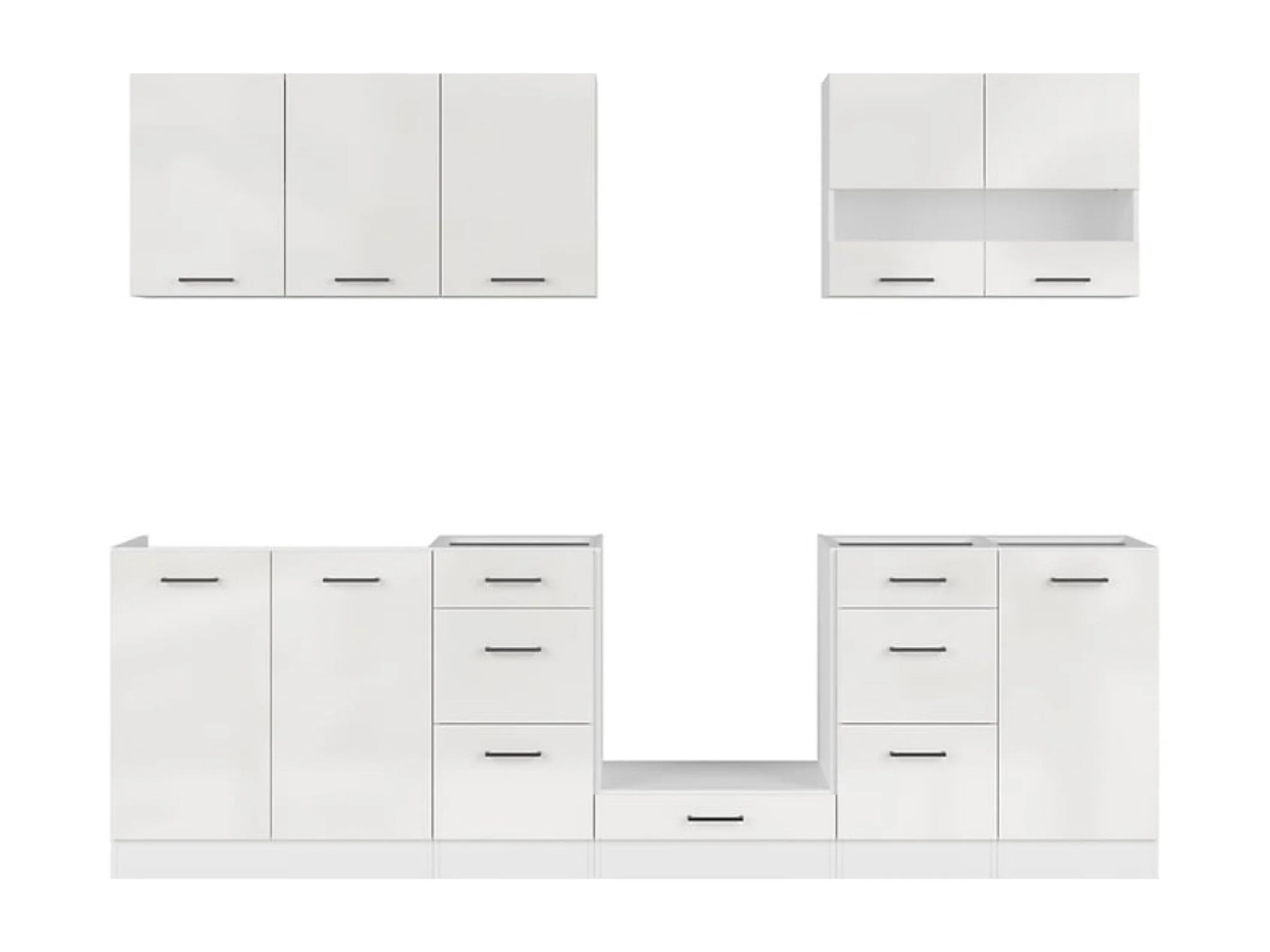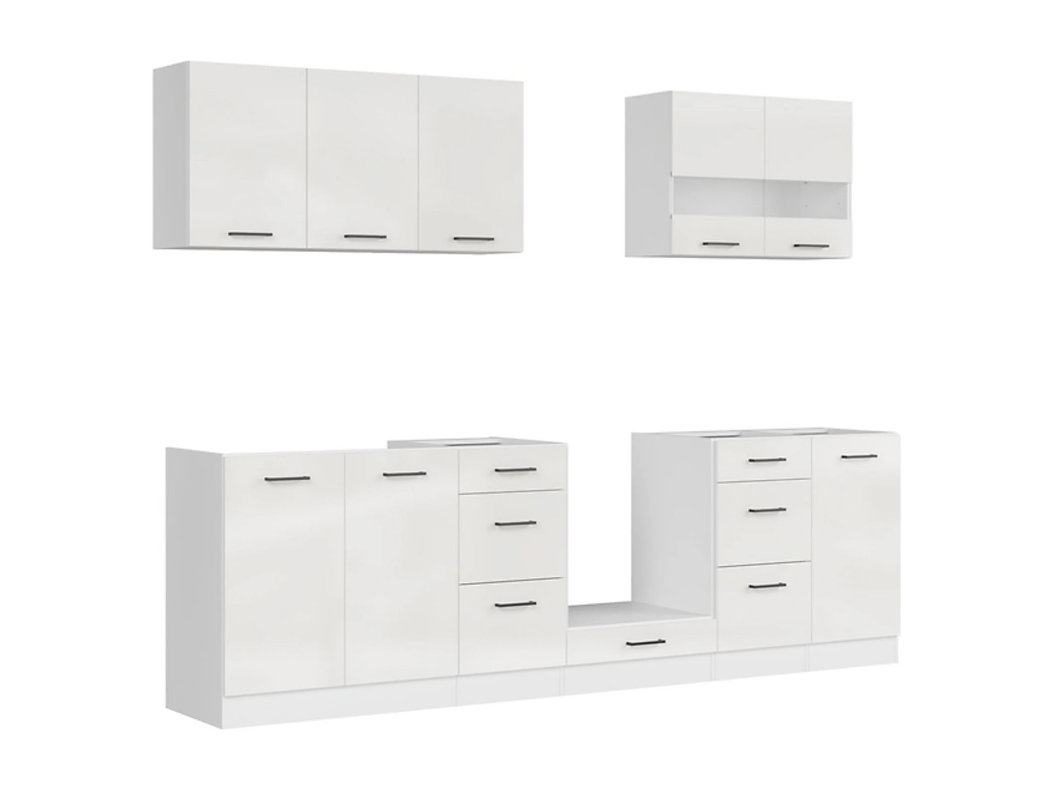 Cuisine complète 260 cm,Ensemble de meuble de cuisine coloris Blanc/Craie brillant, plan de travail non inclus