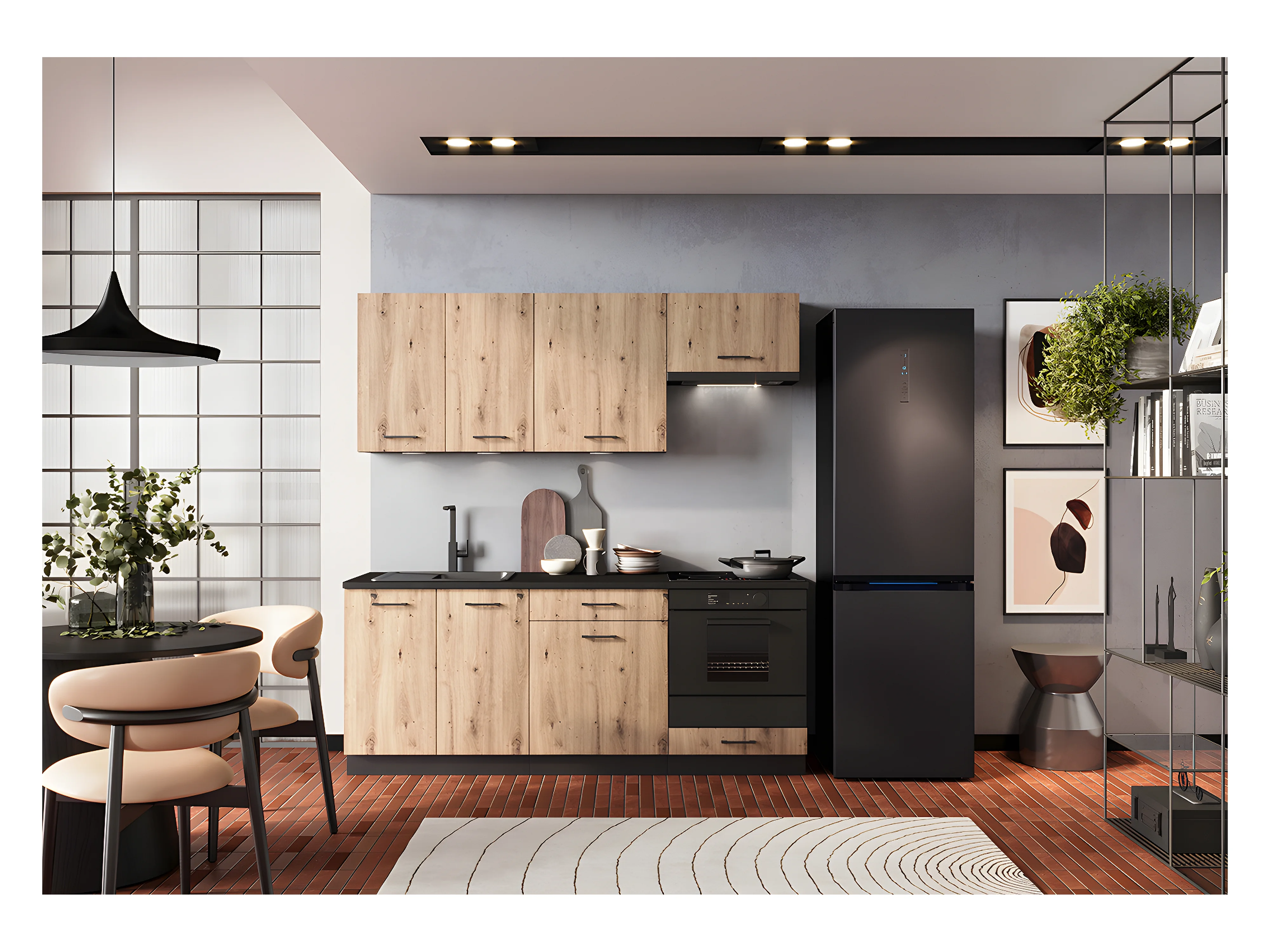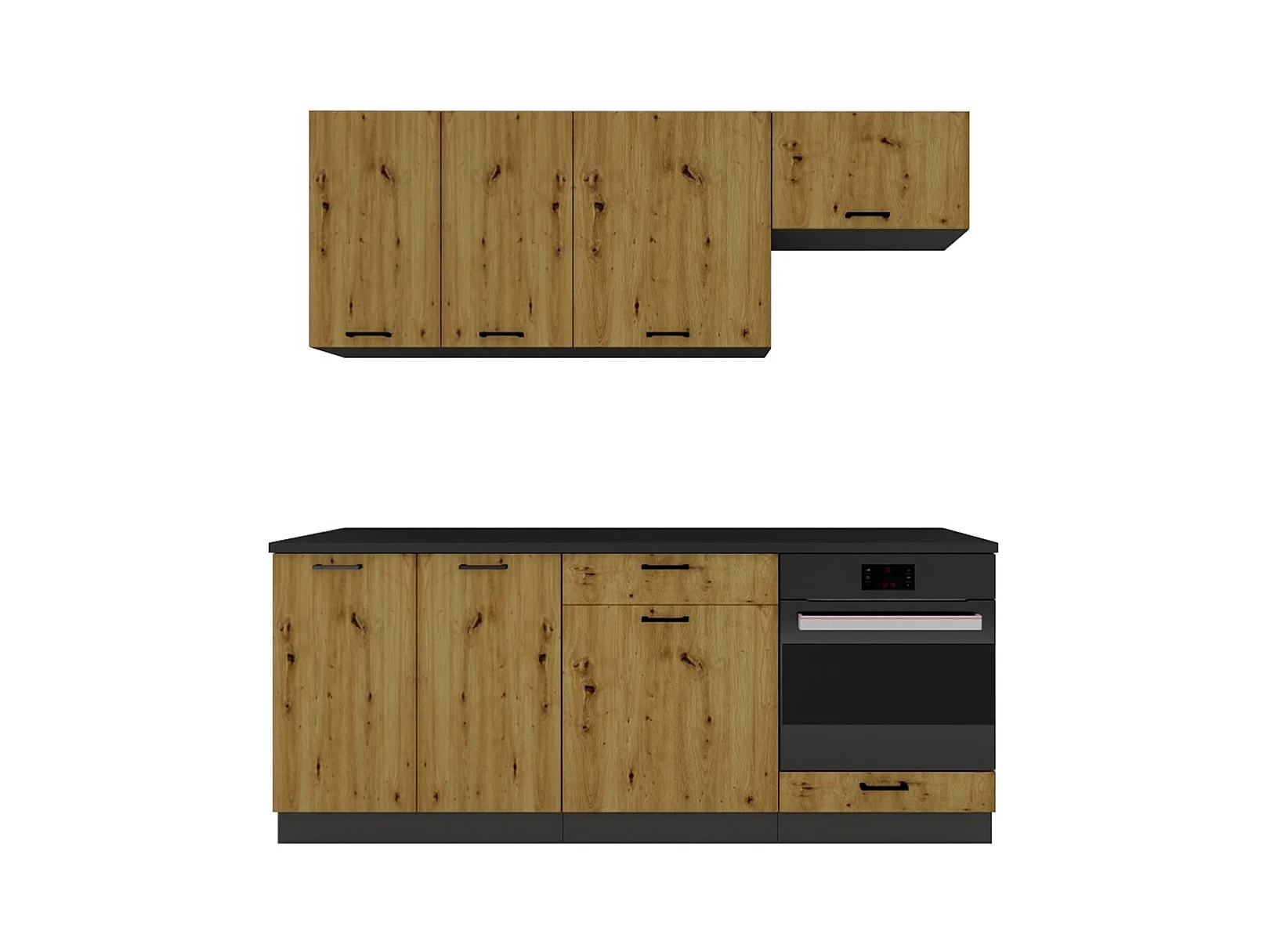Cuisine complète ANIA 6 éléments couleur Chêne Artisan, graphite - Longueur 200/200 cm