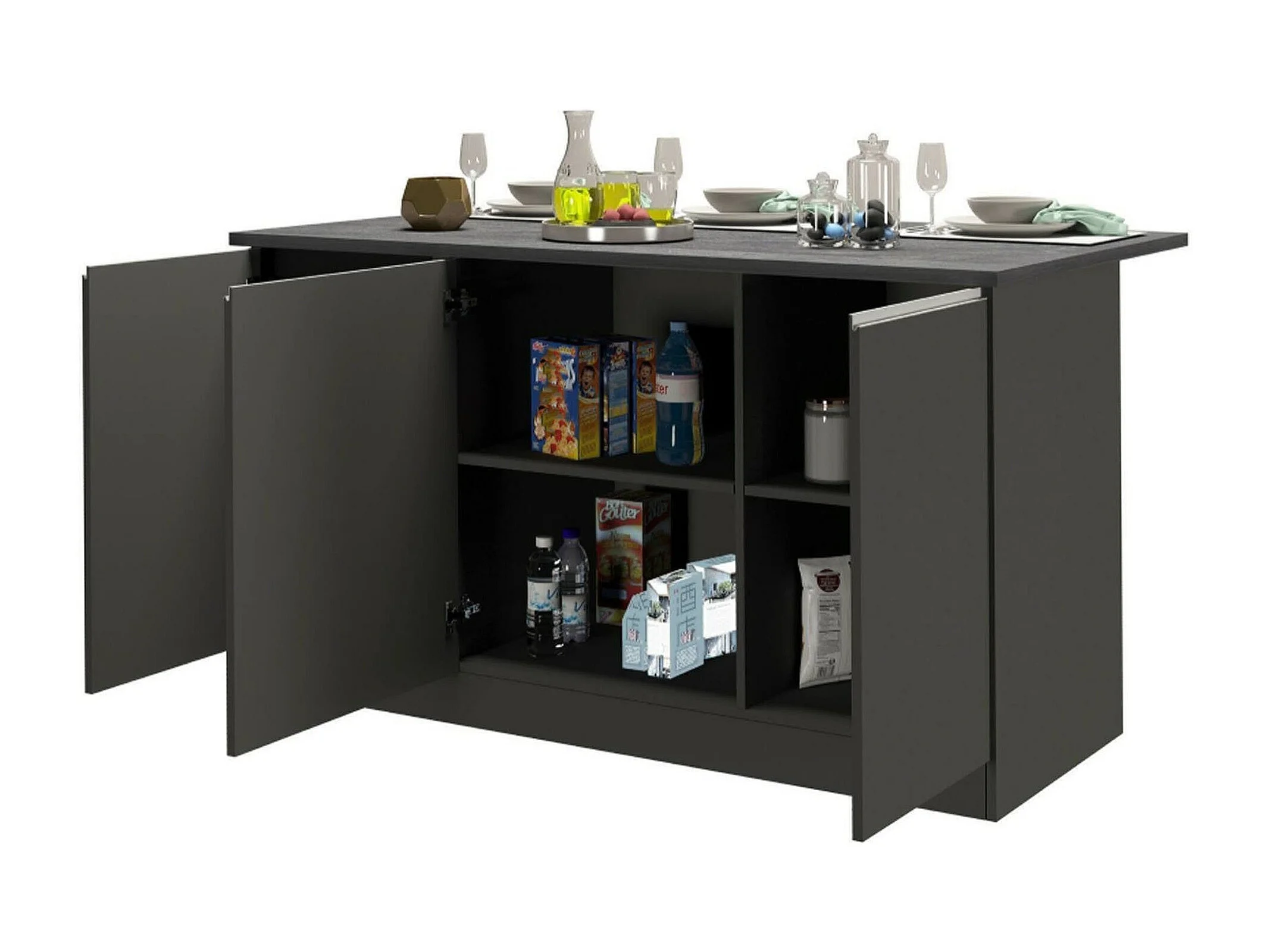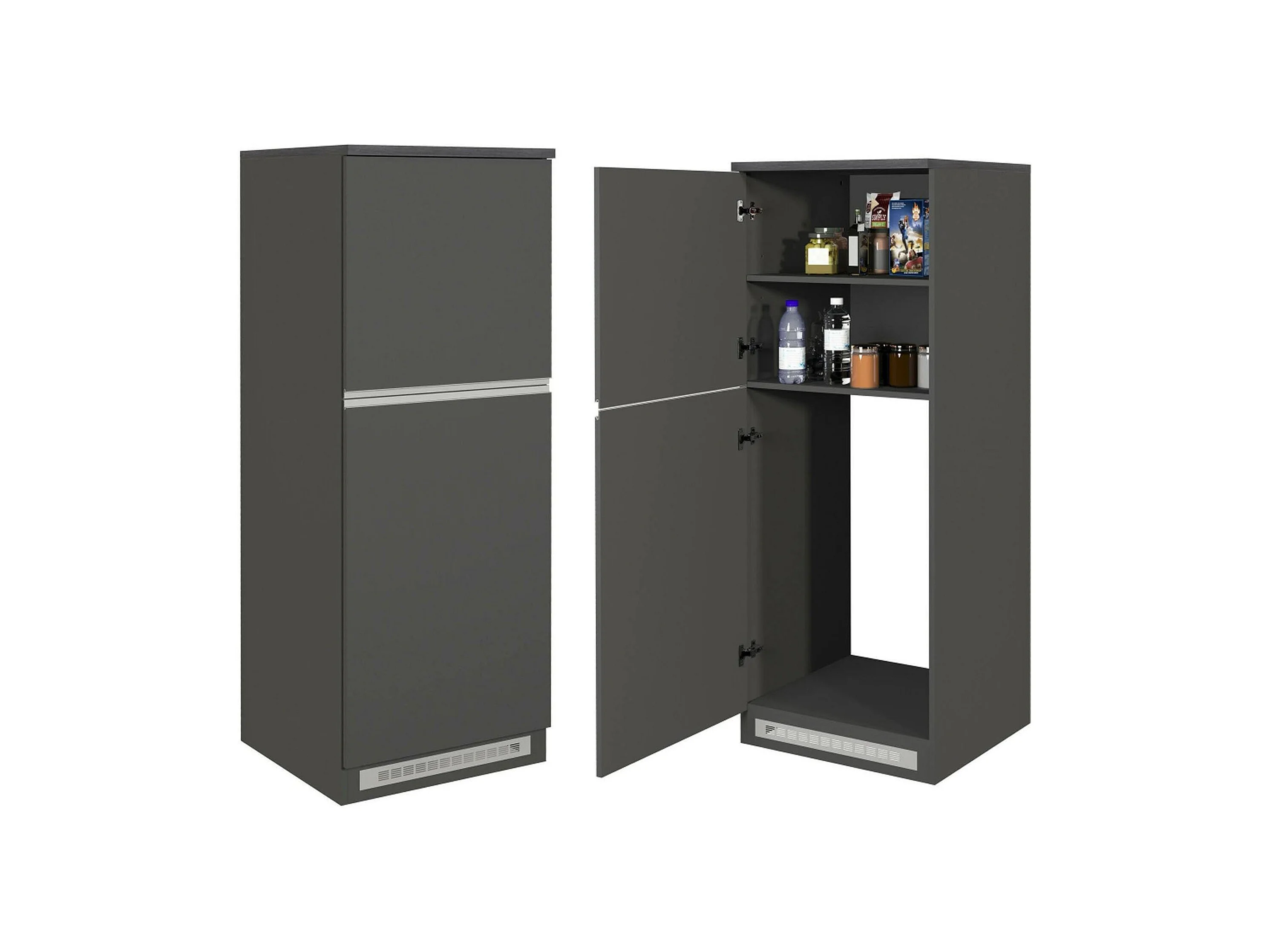 Cuisine complète Dancelott, Ensemble avec garde-manger, Meuble de kitchenette, Kit bloc avec îlot et porte-frigo, 100% Made in Italy, Anthracite et Ardoise