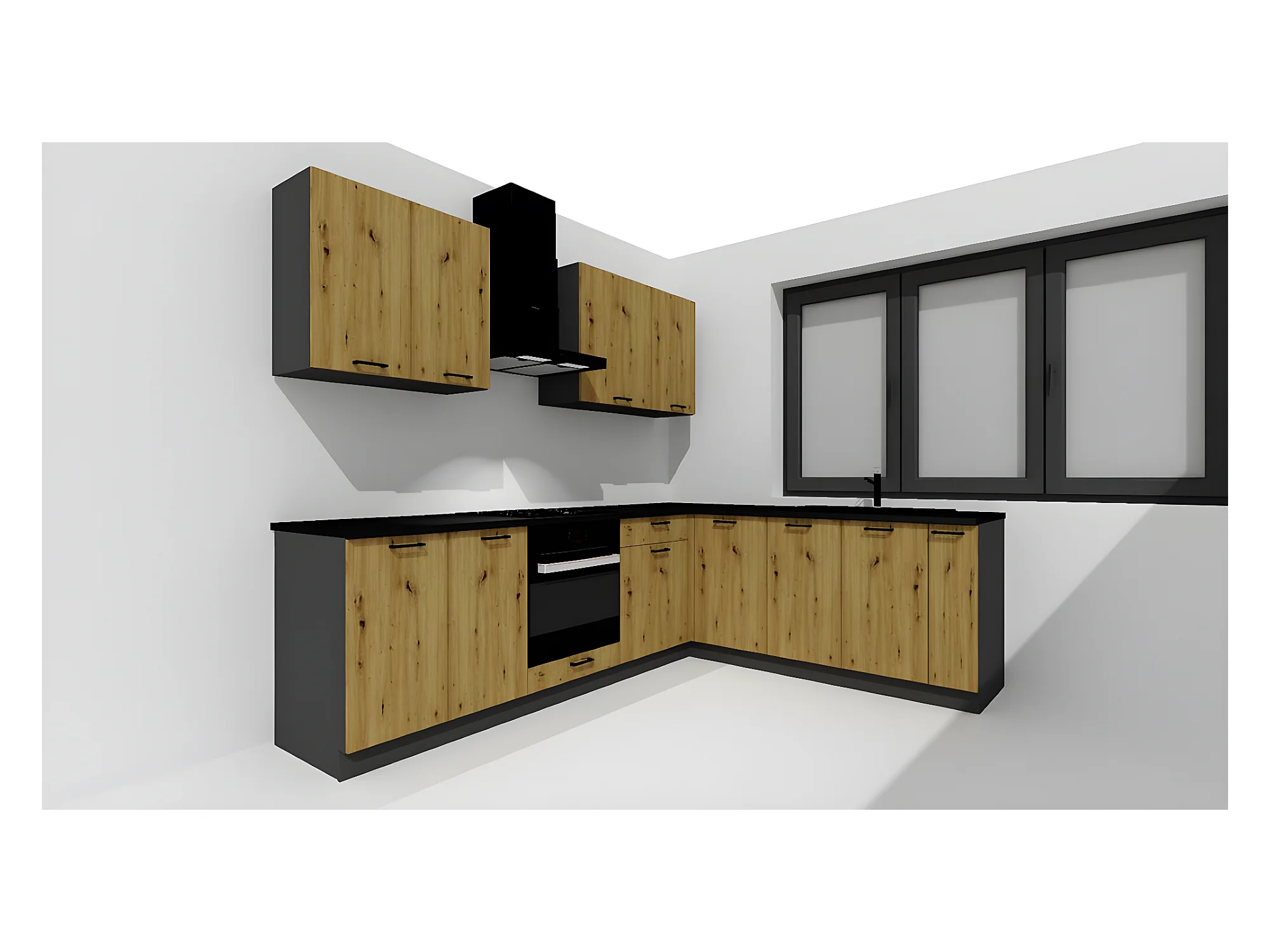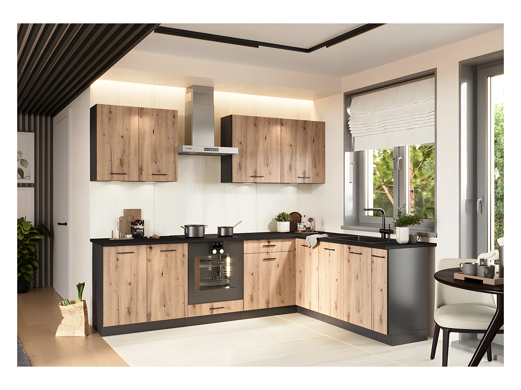 Cuisine complète d'angle ANIA 9 éléments couleur Chêne Artisan, Graphite - Longueur 200/260 cm