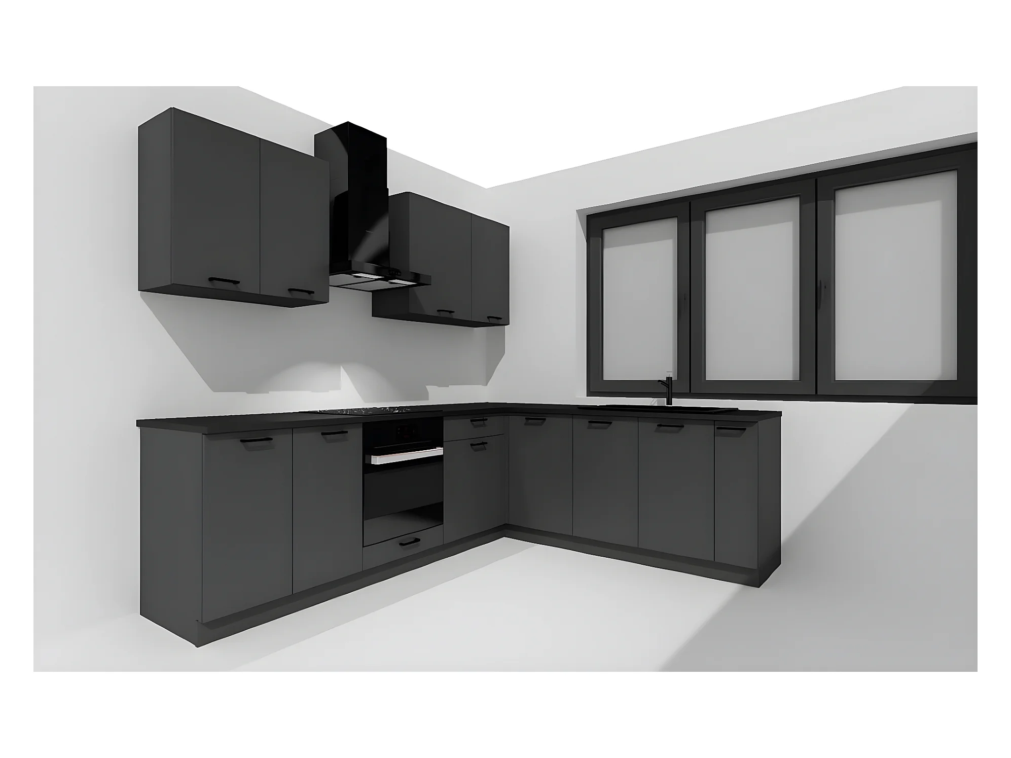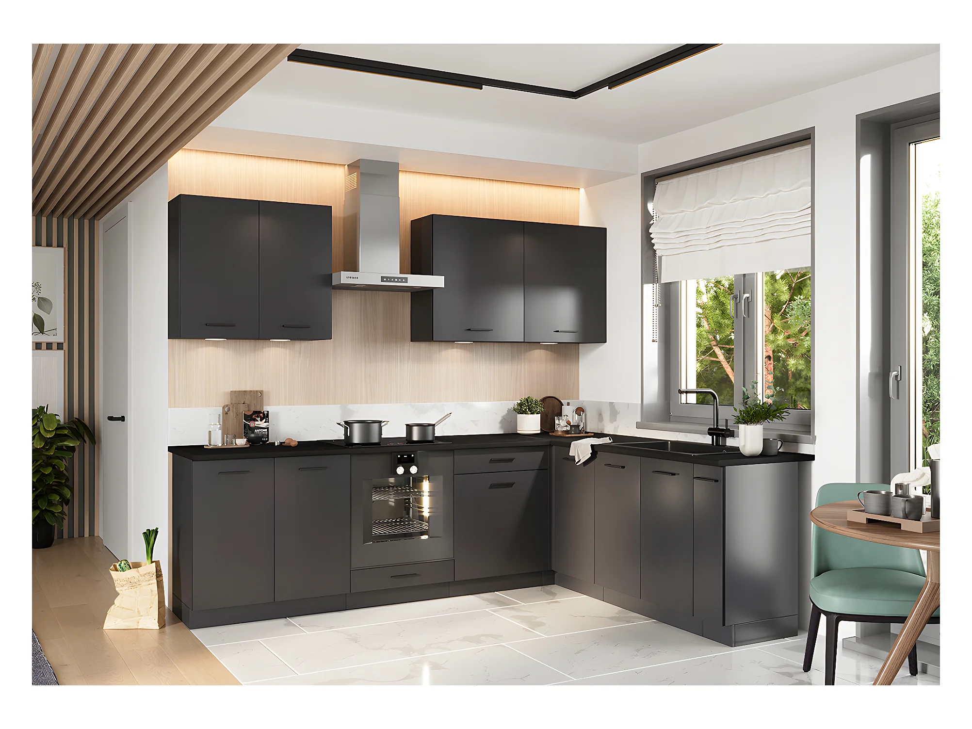 Cuisine complète d'angle ANIA 9 éléments couleur Graphite - Longueur 200/260 cm