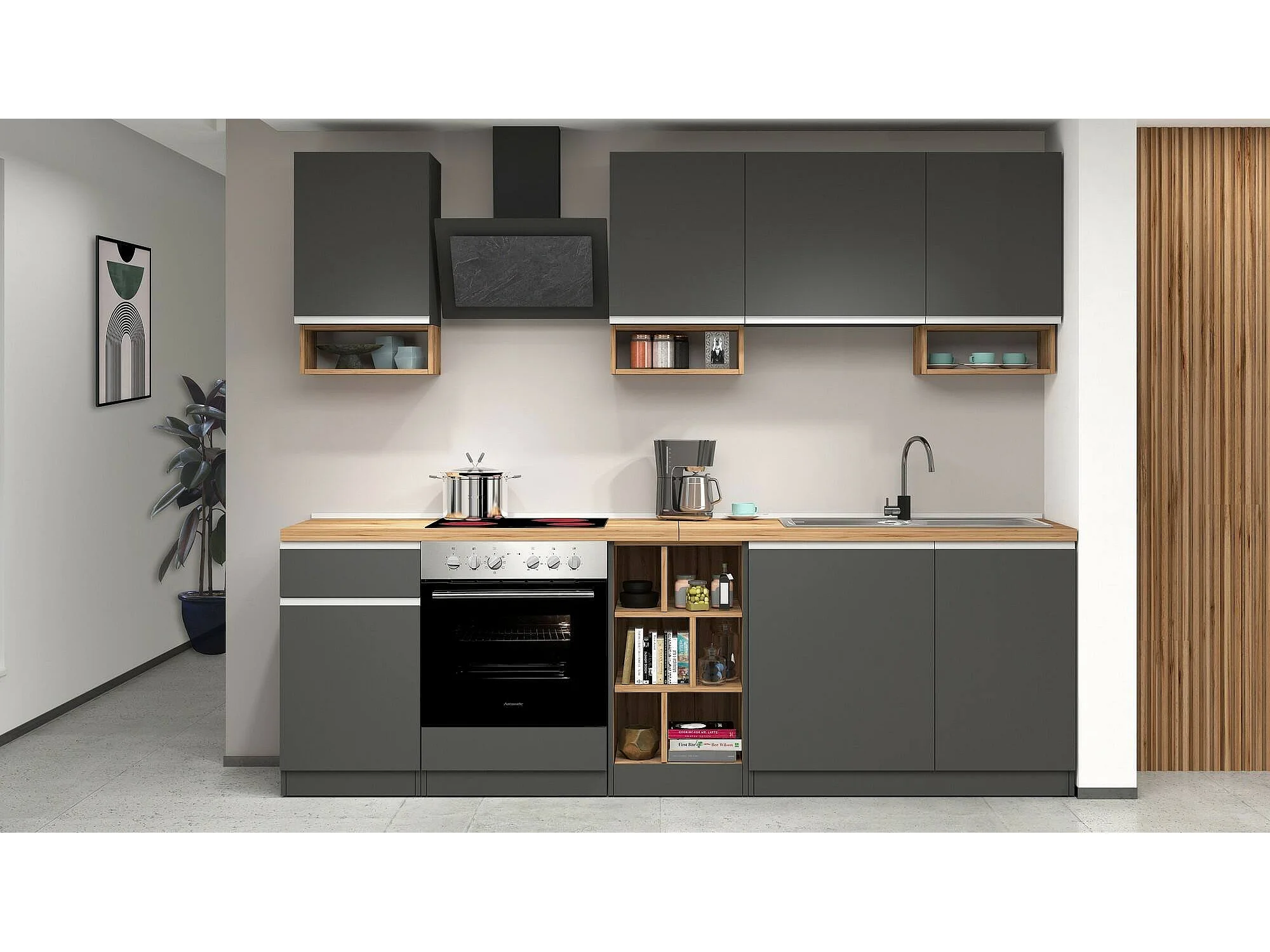 Cuisine complète Dcelient, Ensemble avec garde-manger, Meuble de kitchenette, Kit bloc linéaire, 100% Made in Italy, 255x60h85 cm, Anthracite et Chêne